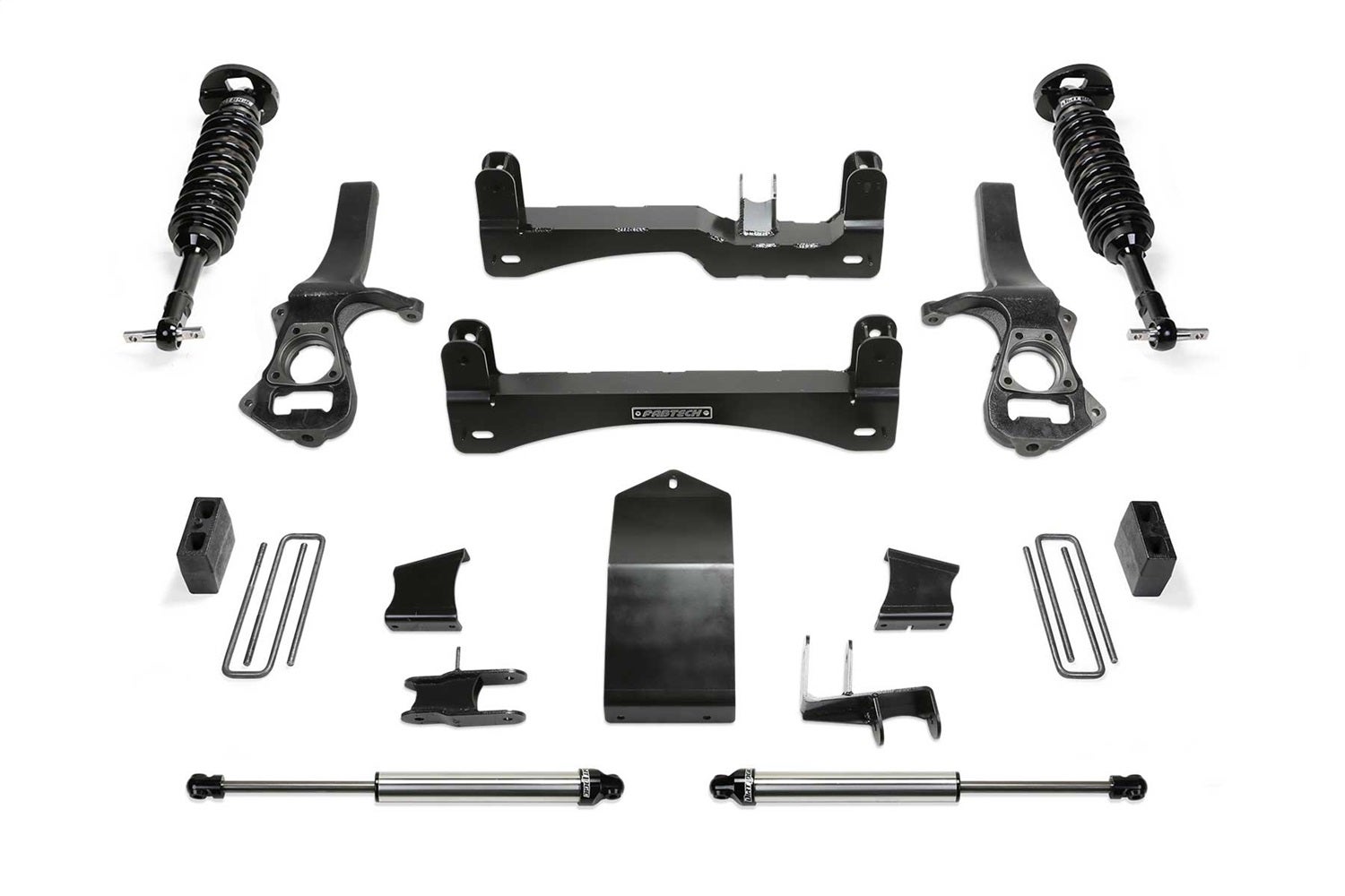 The Chevy Trail Boss and GMC AT4 both have a factory 2" lift compared to other GM 1500 trucks of the same year model. Fabtech's suspension system for these two trucks provide a 4" lift height on top of the factory 2" lift for clearance of 35" tall tires. Once a Trail Boss or AT4 is lifted with a Fabtech 4" system, the truck will sit at the same height as a 1500 with a 6" suspension and 35" tires. The near stock track width keeps the tires under the fenders for a clean appearance. Fabtech's proprietary steering knuckle geometry provides excellent lock to lock turning radius to maneuver in tight spots. Heavy duty 1/4" thick steel crossmembers feature OE style alignment cam pins that utilize the factory cams for easy adjustment. Triple front diff mounts reposition the differential for vibration free operation at high speed. The stainless steel Dirt Logic 2.5 Coilovers replace the Trail Boss or AT4 coilover with an outstanding ride quality both on and offroad. They are designed for aggressive offroad use yet have a supple on road feel. Rear Dirt Logic 2.25 shocks aid in damping the vehicle for a balanced ride. Rear lift is accomplished by removing the factory 2" block and replacing it with a 5" block and u-bolt system. Fabtech has addressed all aspects of the Trail Boss suspension for full suspension travel with lock to lock steering without over cycling. Comes with a free 5 year 60,000 mile Powertrain Warranty.