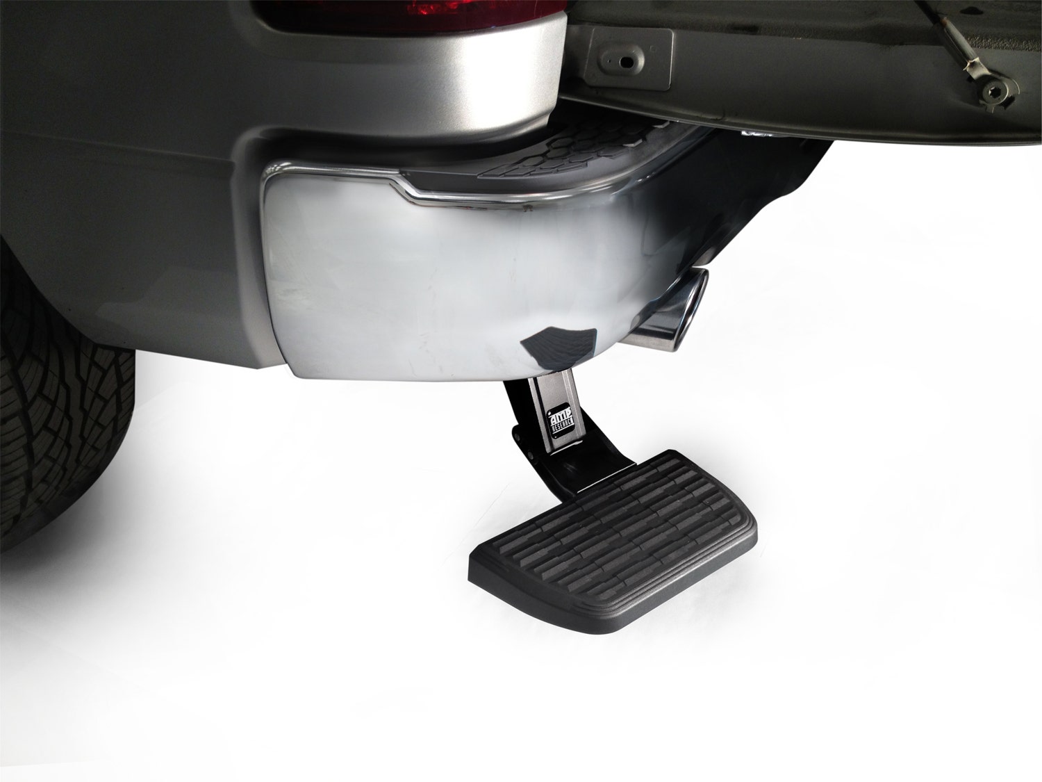 Go ahead and step on it. Bedstep is a real time saver. Not to mention knee and back saver. Strong and rugged, this non-slip, retractable bumper step quickly flips down with the nudge of a foot providing a faster, easier and safer way to load or unload your pickups cargo. Supports up to 300 lbs. Frame mounts under the rear bumper so it works even with an open tailgate or when towing.