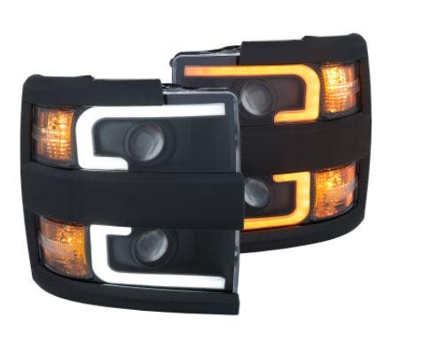 Projector Headlight Set; Clear Lens; w/Plank Style Switchback; Black w/Amber; Black Rim; Pair;