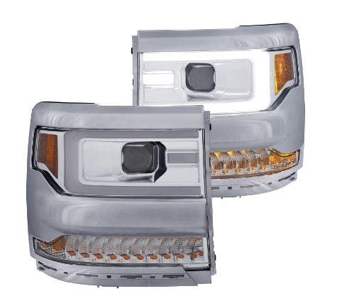 Projector Headlight Set, Clear Lens, Chrome Housing, Pair,. Guaranteed To Improve Your Vehicles Appearance. Rigorously Tested For Fit And Function. Simple Plug And Play. No Modifications Required. Easy Installation Using Common Hand Tools. Uses Stock Mounting Locations And Hardware. D.O.T. Compliant To S.A.E. Standards. Sold As A Pair.