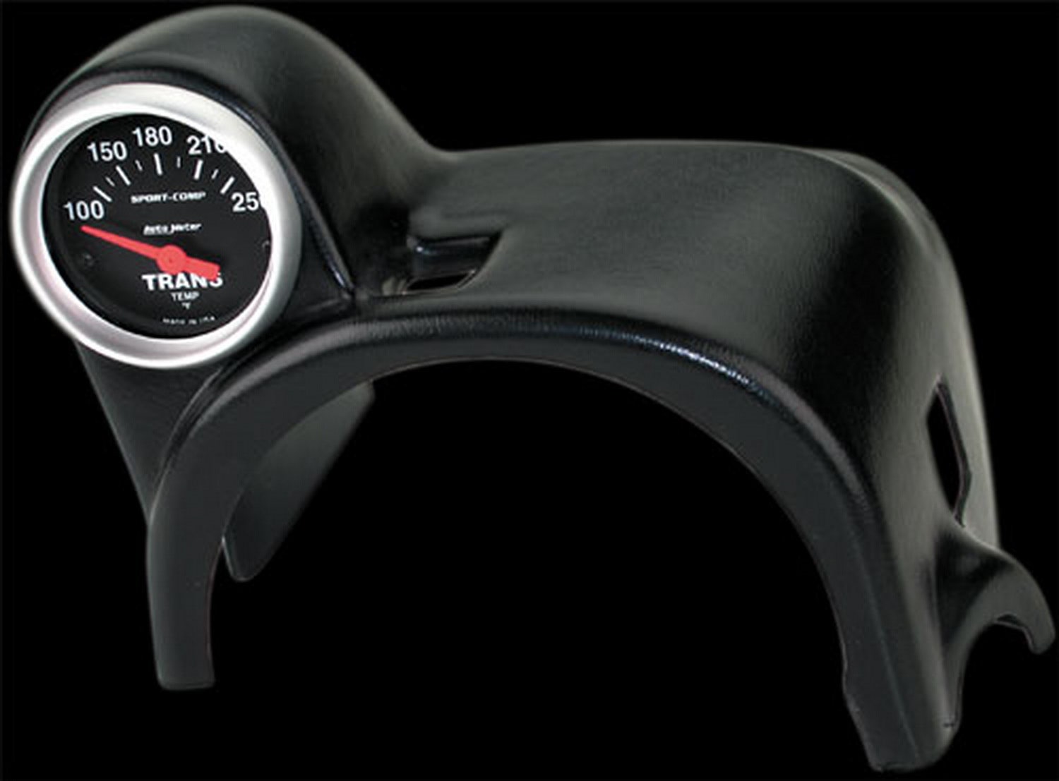 AutoMeter steering column gauge mounts (pod) are covers that install over the top of your vehicles factory steering column shroud, providing a clean and convenient location to install an additional 2 1/16" gauge or two in the drivers field of vision. These products are vehicle-specific fitment to ensure proper fit and finish and are molded from durable ABS composite material with a black textured finish which can be painted to match your interior trim if desired.