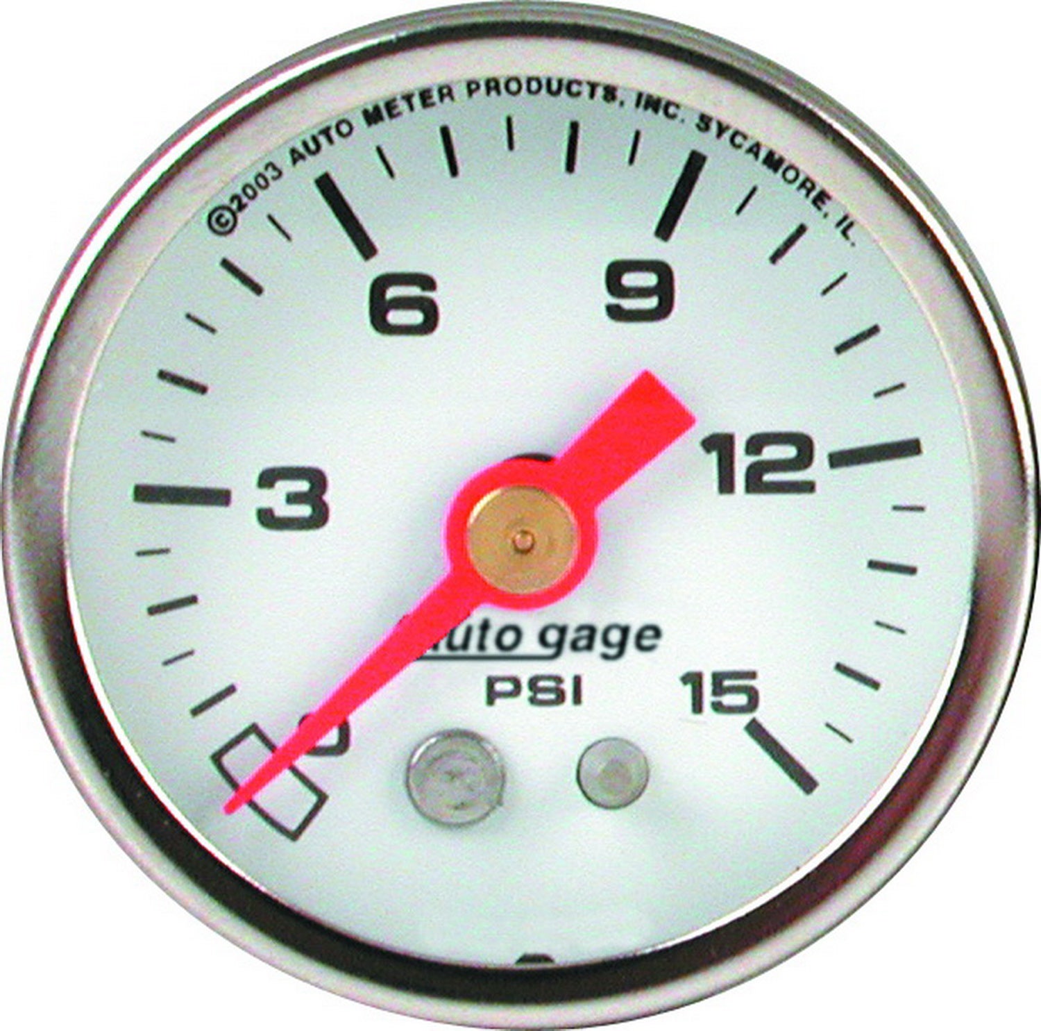 Sport-Comp Mechanical Fuel Pressure Gauge; 1-1/2 in.; White Dial Face; Fluorescent Red Pointer; Mechanical; 0-15 PSI;