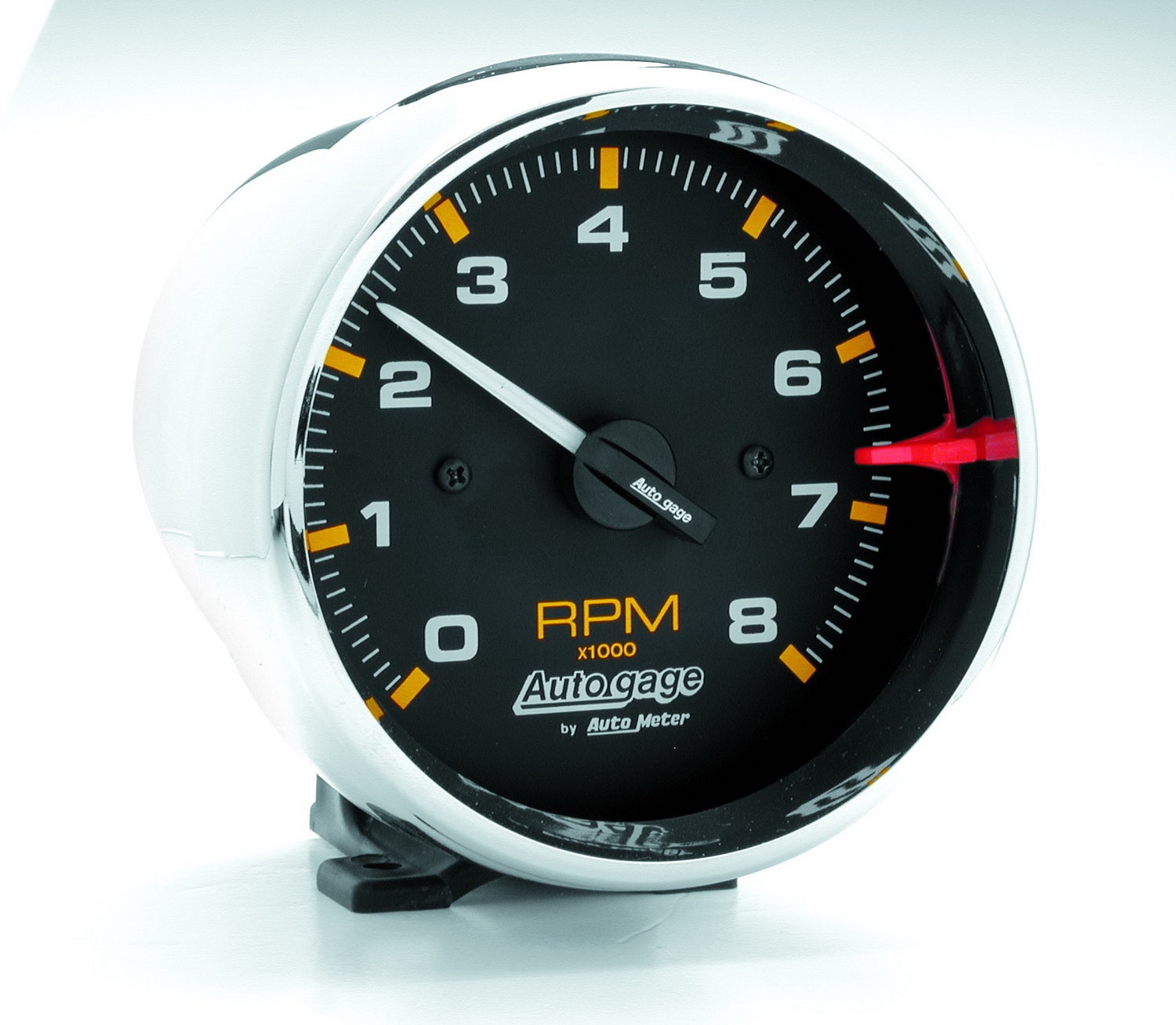 Autogage Tachometer; 3-3/4 in.; Black Dial Face; White Pointer; Chrome Bezel; White Incandescent Lighting; Electric Air-Core; 0-8000 RPM;