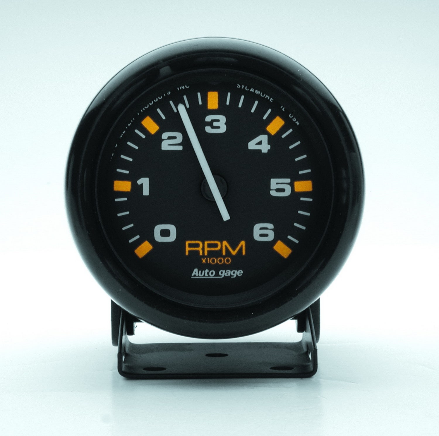 Autogage Mini Tachometer; 2-3/4 in.; Black Dial Face; White Pointer; White Incandescent Lighting; Electric Air-Core; 0-6000 RPM;