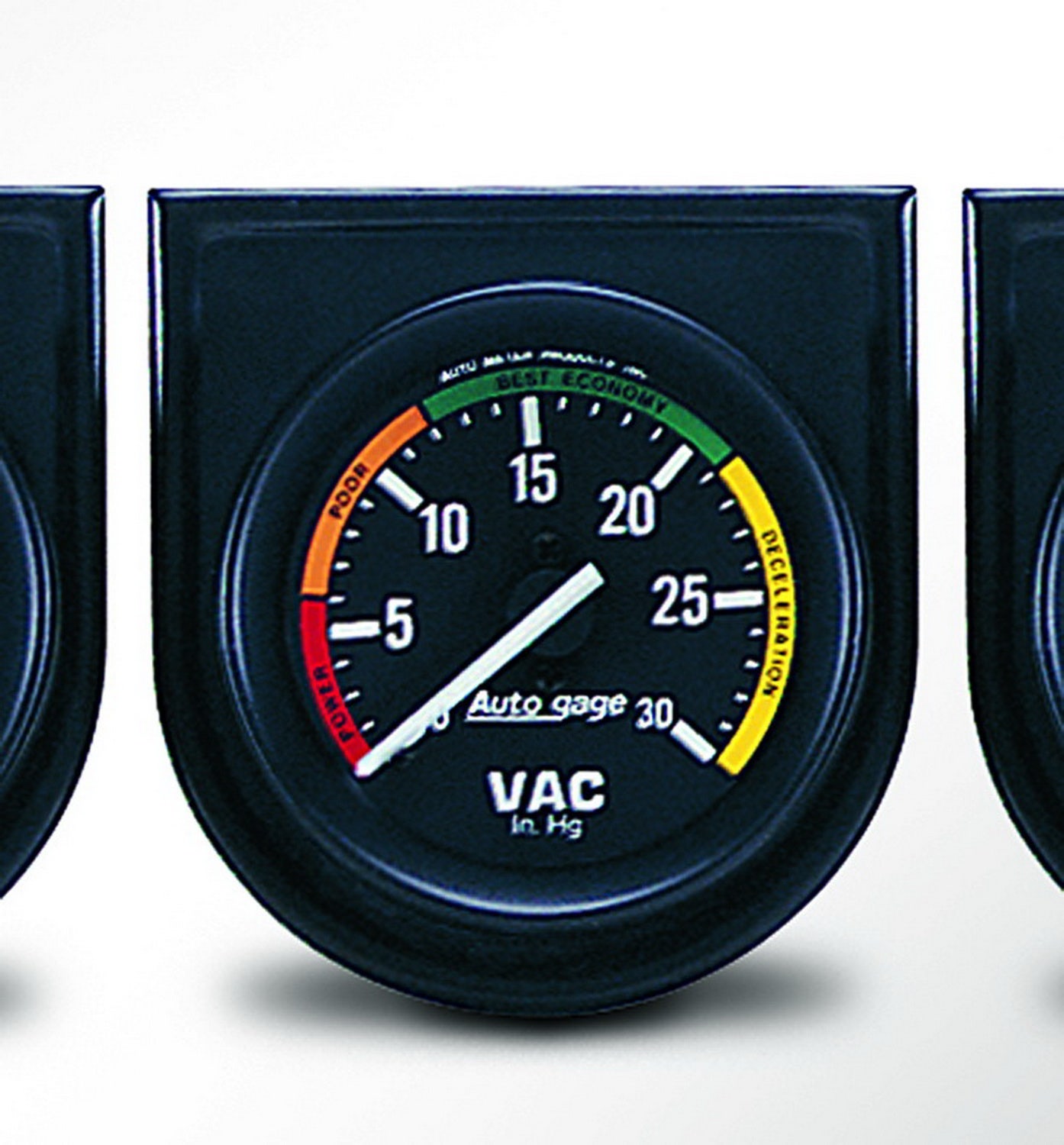 Autogage Vacuum Gauge Panel; 2-1/16 in.; Black Dial Face; White Pointer; White Incandescent Lighting; Mechanical; 0-30 IN HG;