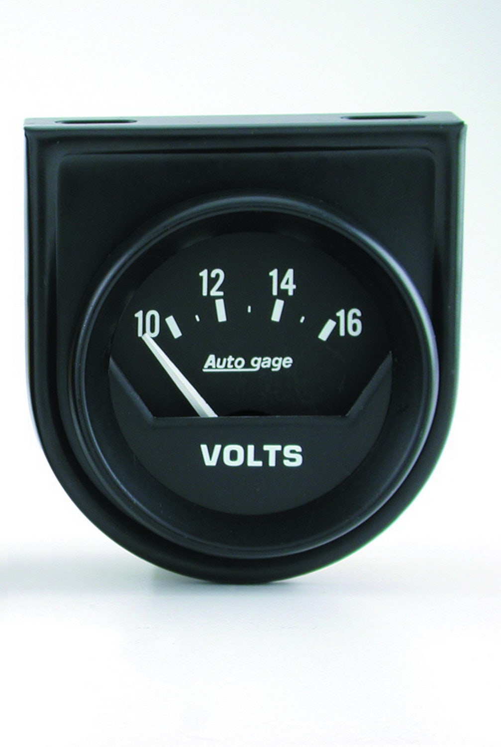 Autogage Electric Voltmeter Gauge; 2-1/16 in.; Black Dial Face; White Pointer; White Incandescent Lighting; Electric Air-Core; 10-16V;