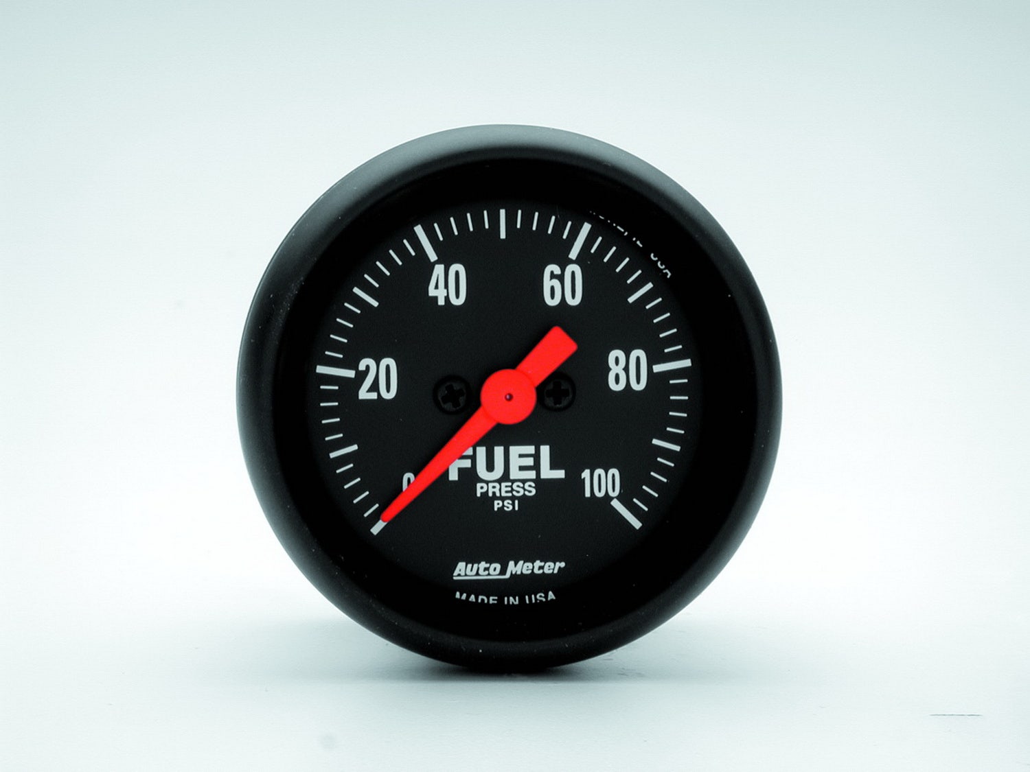 Z-Series Electric Fuel Pressure Gauge; 2-1/16 in.; Black Dial Face; Fluorescent Red Pointer; White Incandescent Lighting; Electric Digital Stepper Motor; 0-100 PSI;
