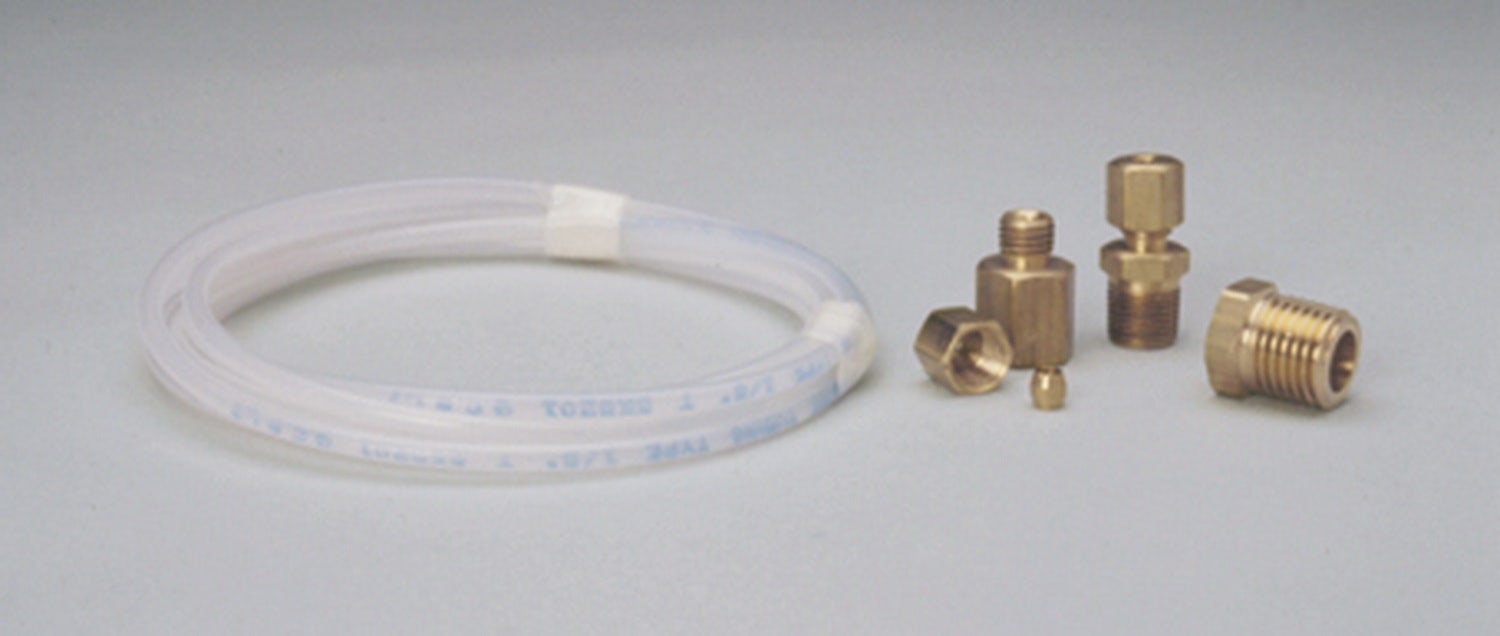 For use with mechanical pressure gauges up to 200 PSI. Includes 12ft. of 1/8" Nylon Tubing, 1/8" NPT Male to 1/8" compression fitting, 1/8" NPT Female to 1/8" compression fitting, and 1/8" NPT to 1/4" NPT bushing. DO NOT USE with Fuel Pressure, Brake Pressure, or Nitrous Pressure gauges.