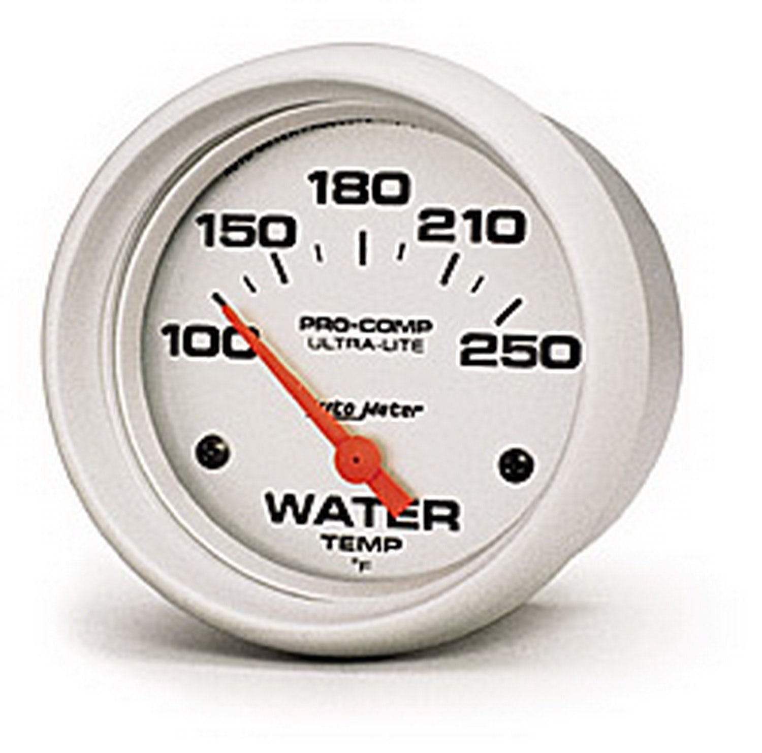 Ultra-Lite Electric Water Temperature Gauge; 2-5/8 in.; Silver Dial Face; Fluorescent Red Pointer; White Incandescent Lighting; Electric Air-Core; 100-250 Degree F;