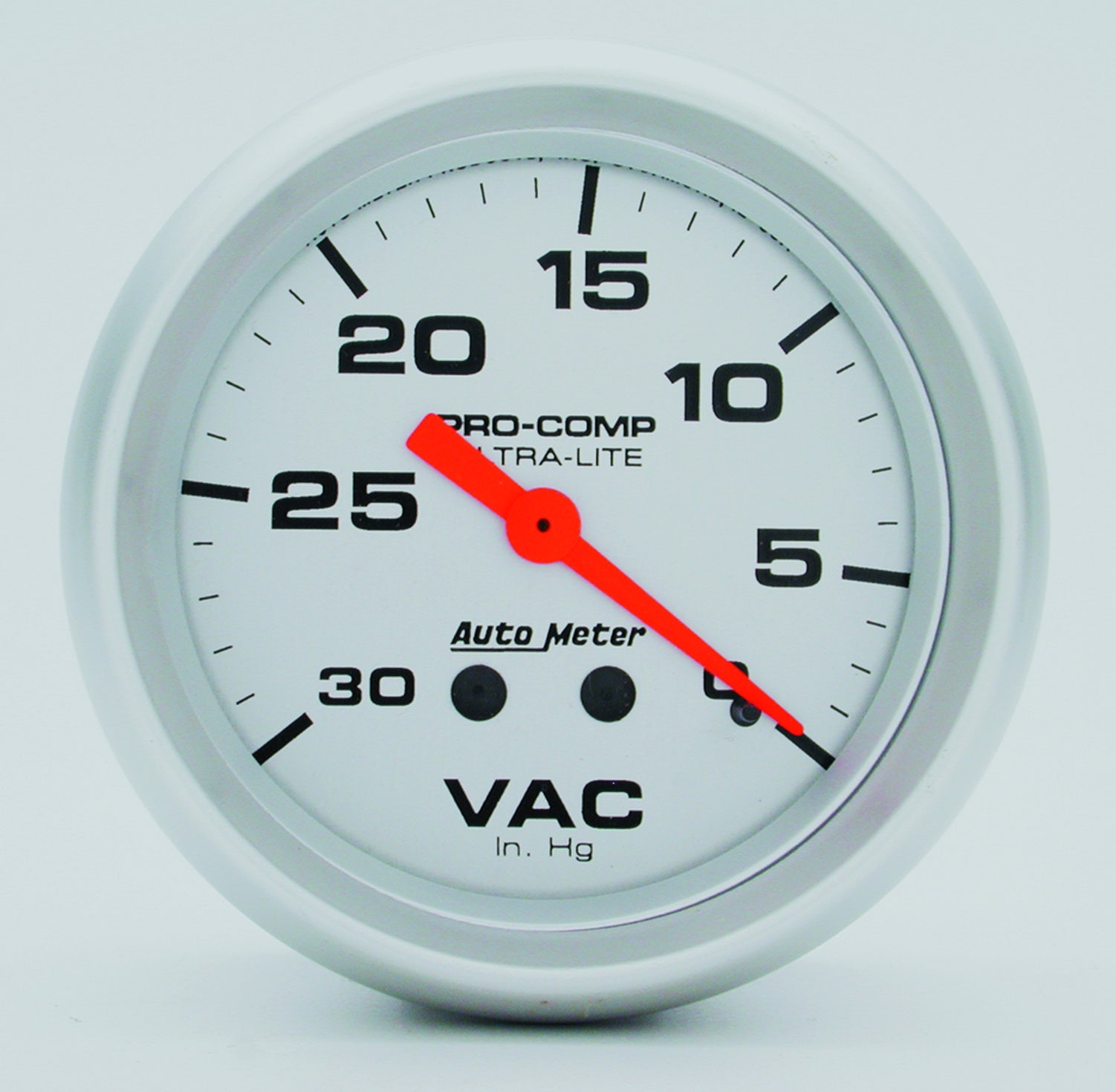 Ultra-Lite Mechanical Vacuum Gauge; 2-5/8 in.; Silver Dial Face; Fluorescent Red Pointer; White Incandescent Lighting; Mechanical; 0-30 IN HG;