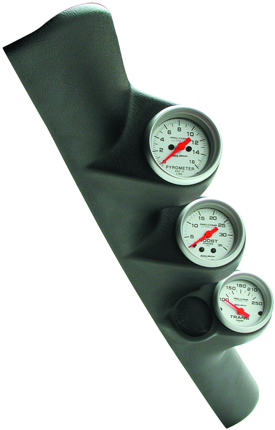 AutoMeter has brought together the most popular diesel gauges into a complete, ready to install pillar kit. The kit includes a pyrometer (EGT), boost, transmission temperature gauge, and gauge pillar mount.