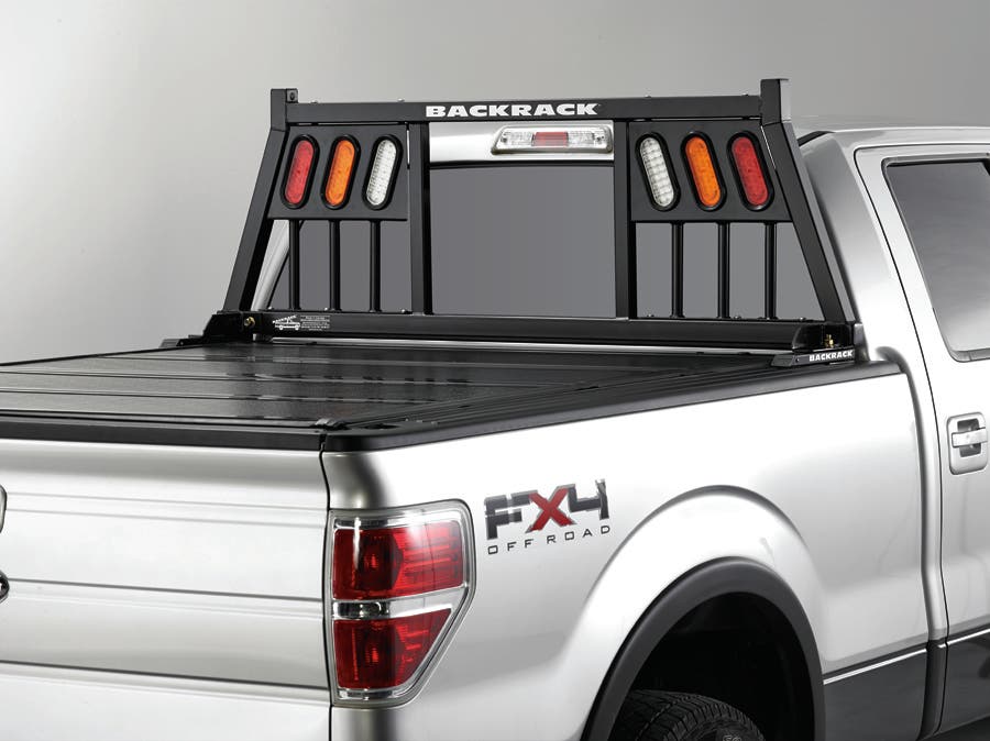 Lights Headache Rack by BackRack(TM). With this headache rack from BackRack(TM), you will make your truck stand out from the crowd and get added visibility and protection when braking thanks to the lights. The rack comes with two inserts that are powder coated for superior corrosion resistance and easily bolt into the frame using stainless steel cap screws.