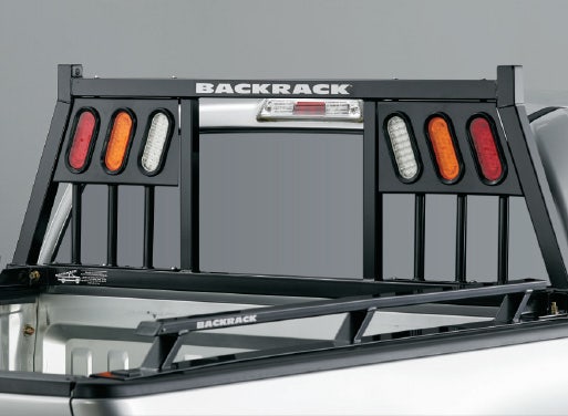 Lights Headache Rack by BackRack(TM). With this headache rack from BackRack(TM), you will make your truck stand out from the crowd and get added visibility and protection when braking thanks to the lights. The rack comes with two inserts that are powder coated for superior corrosion resistance and easily bolt into the frame using stainless steel cap screws.