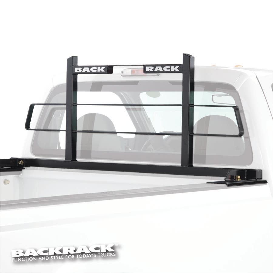 Back Rack Cab Guard by BackRack(TM). BackRack's cab guard protectors mount to existing stake pockets at the front of your bed to protect your cab from damage caused by large, heavy cargo that may shift forward. For cargo such as small pipework, the "Safety Rack" comes with a welded criss-cross center grid to give you the most complete protection. Reinforced steel construction ensures high strength and rigidity, and a protective layer of black powder coat resists scratches, chips, and corrosion.