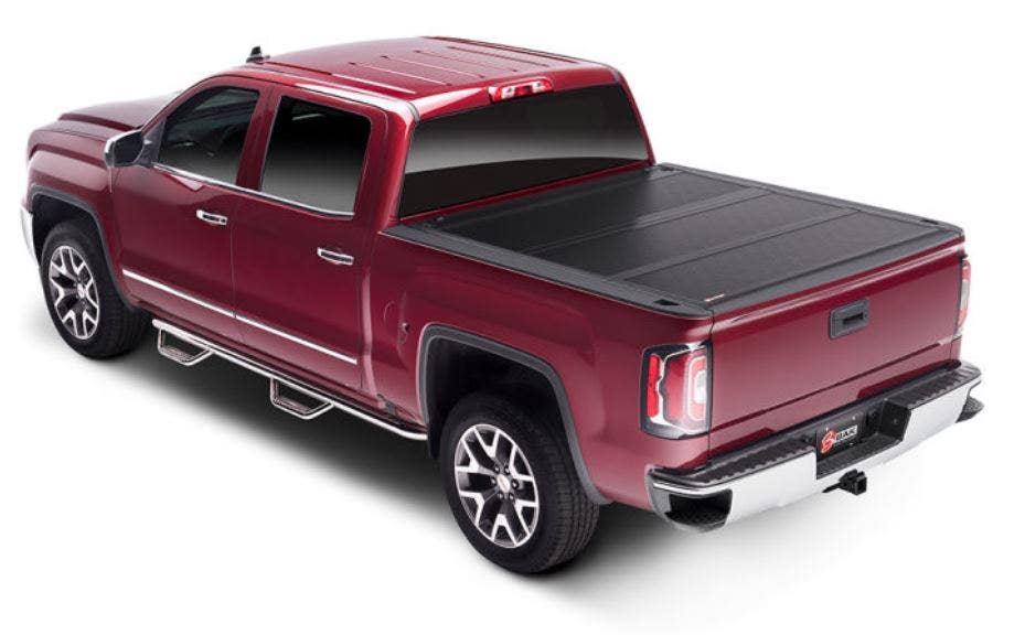 The BAKFlip FiberMax is an aluminum hard folding truck bed cover with an FRP (Fiberglass Reinforced Polymer) surface, making the cover dent, scuff and ding resistant, as well as cooler to the touch. Its tough aluminum substructure, robust hinge design and patented slam latch system make the FiberMax an easy-to-use, dependable cover that is built to last.