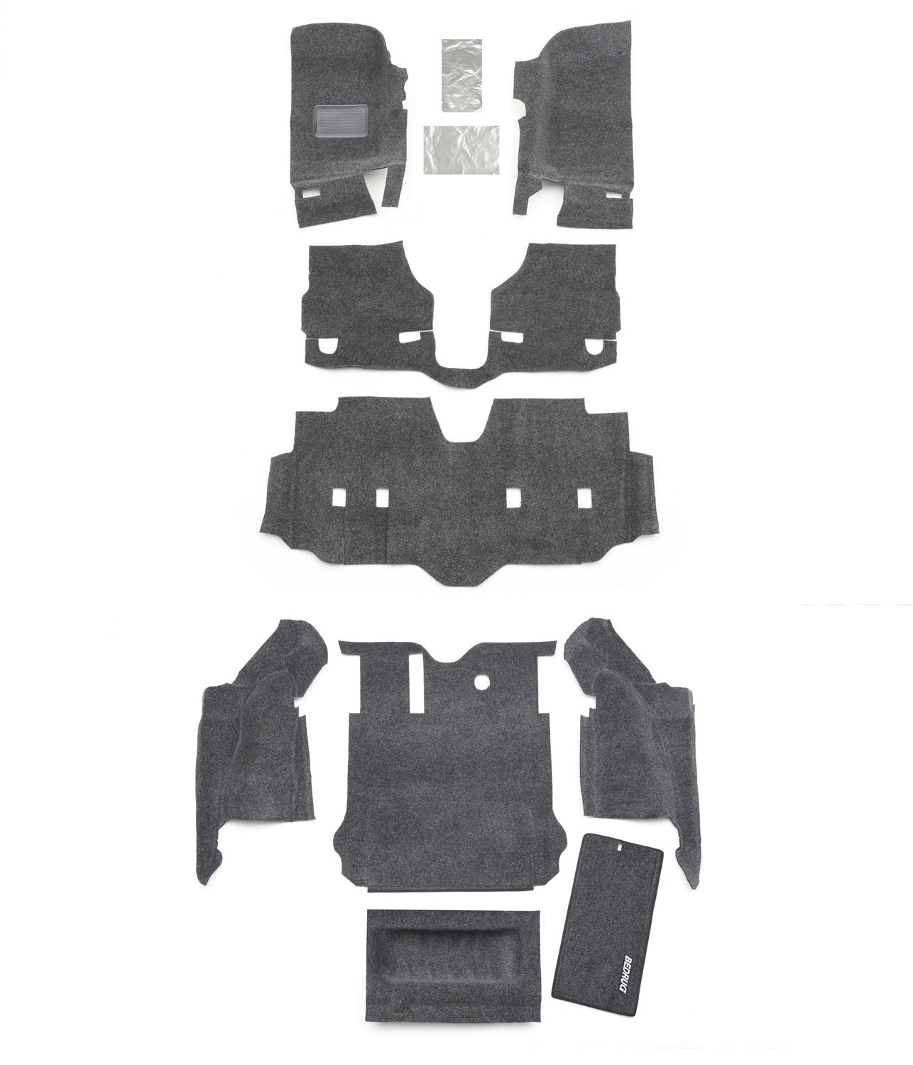 BedRug Cargo Kit; 4 pc. Front; 5 pc. Rear; Incl. Driver Wheel Well/Passenger Wheel Well/Rear Cargo Floor/Tailgate/Tub Liner/Heat Shields;