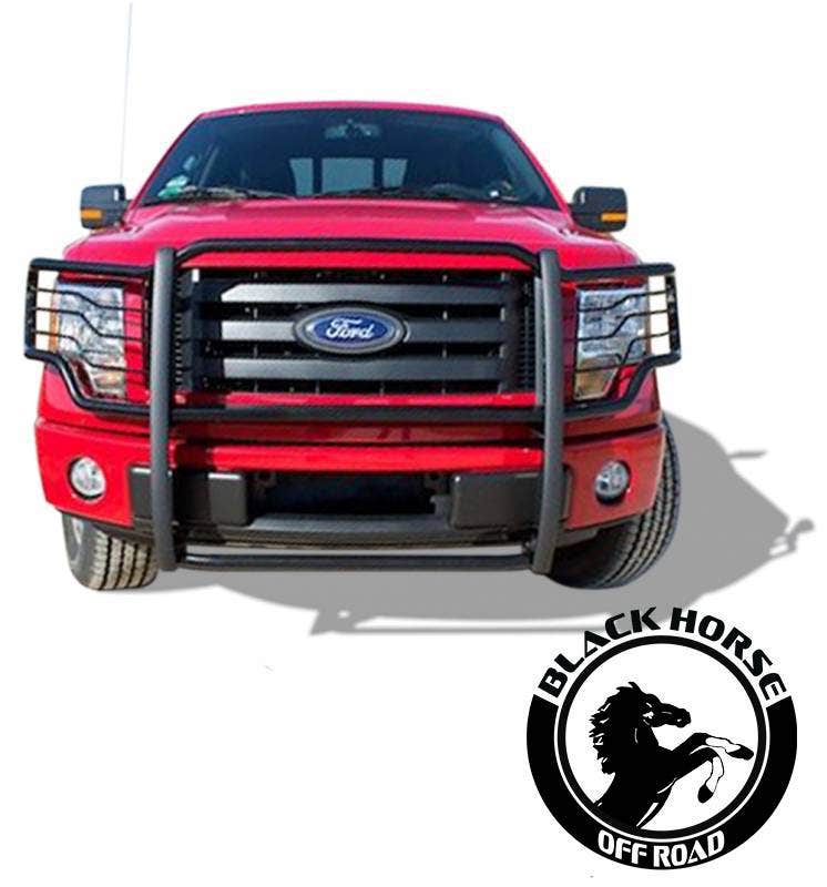 Black Horse Off Road - BLACK HORSE Off Road 17FP32MA-PLR Black Grille Guard with Set of 7 Red LED Compatible with 2015-2021 Compatible with/Replacement for Ford F-150