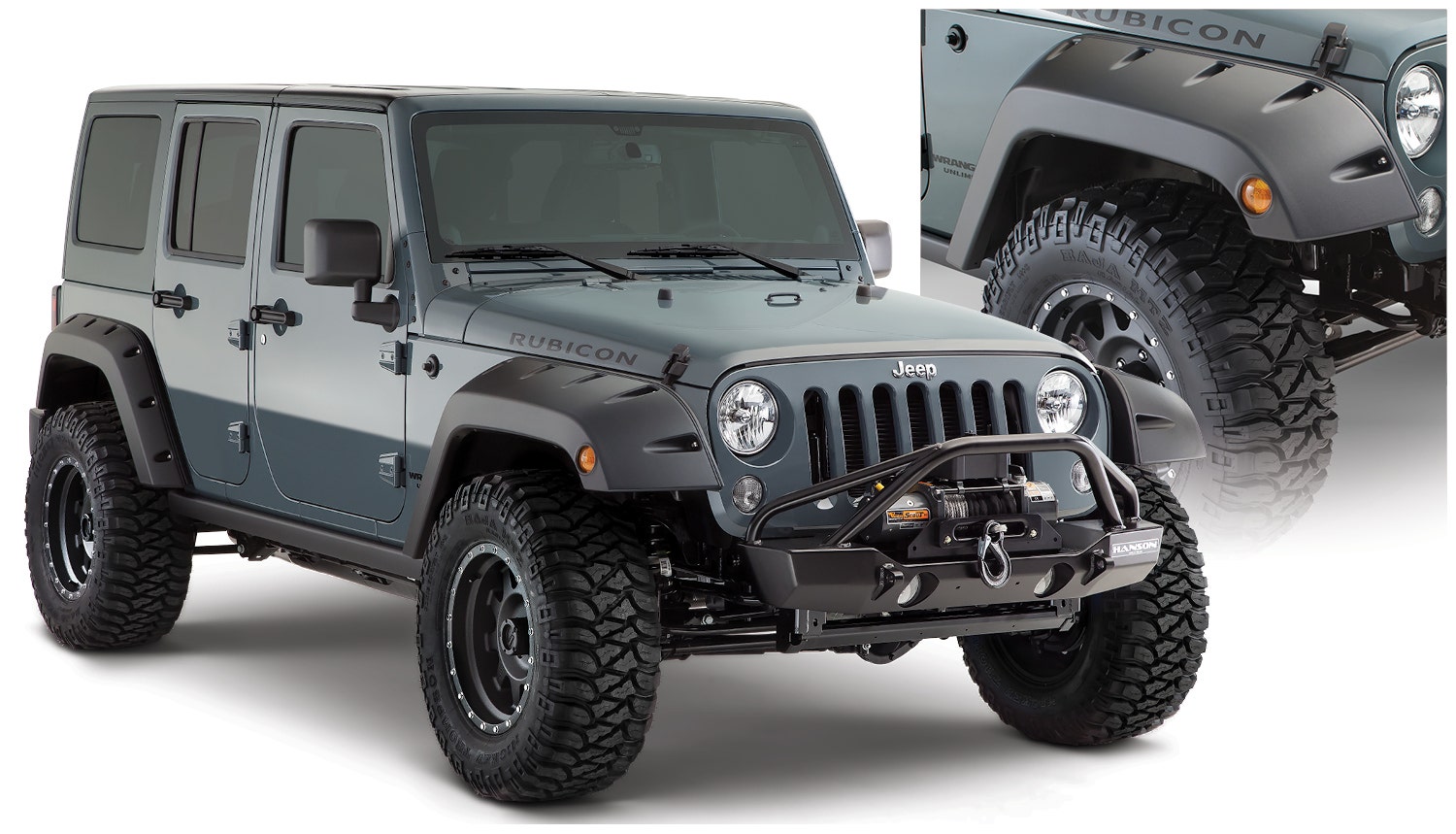 With their recessed stainless steel bolts and massive presence, Pocket Style Fender Flares are a Bushwacker original and an off-road icon. They give you the hard-core look of bolt-on flares, with no body-side sheet metal drilling required. Pocket Style Fender Flares are custom-designed for your vehicle to complement oversized tires and high-clearance lift kits. You can mount them right out of the box with their tough, OEM-style matte black finish they're UV protected so they won't chalk. You can also paint them to match or accent the body color for a factory-custom look. Pocket Style Fender Flares are made from our thick, warp-resistant Dura-Flex 2000 material and tailor-made for added durability and flexibility on the trail. When you need maximum tire coverage with minimum time and effort, it's in the pocket. Pocket Style Fender Flares from Bushwacker.