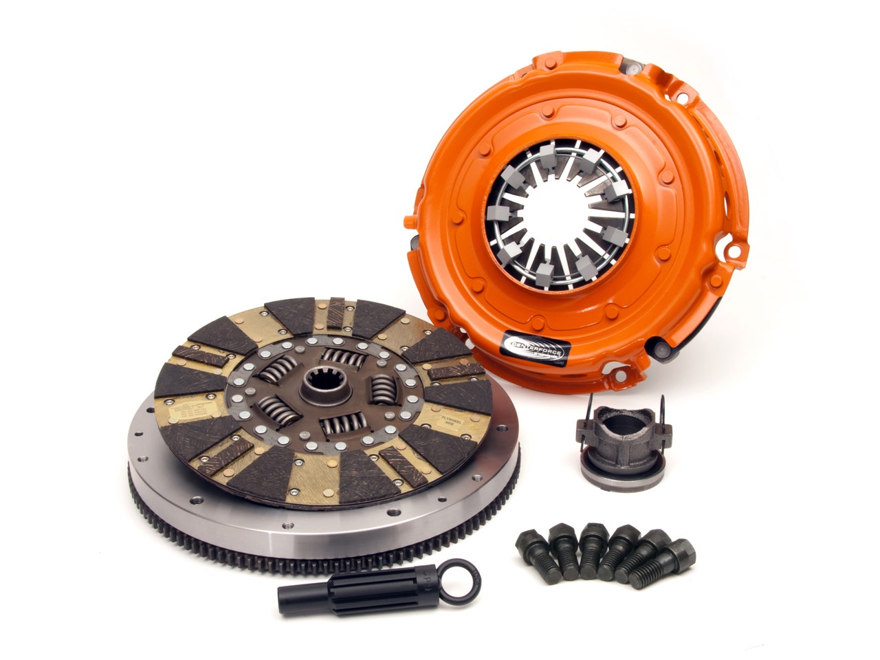 This Centerforce(R) Dual Friction(R) Full Kit with flywheel is engineered for off-road enthusiasts who are looking for the ultimate on and off road performance clutch. The Dual Friction clutch set features our Centerforce centrifugal weight system and specialized machining processes to provide outstanding holding-capacity and exceptional street characteristics without sacrificing pedal effort. The high inertia billet steel flywheel helps the engine maintain RPM's in rough terrain.