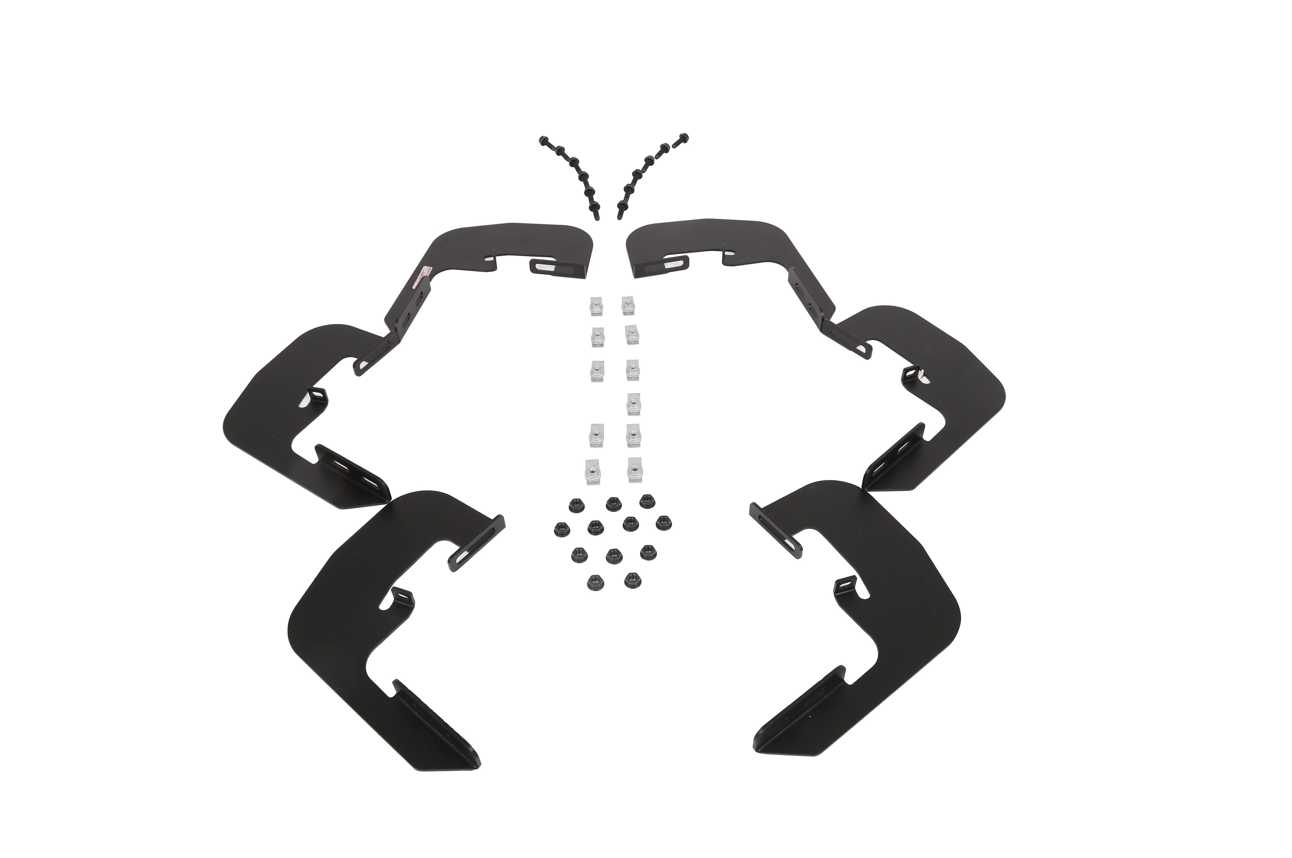 Dee Zee NXt Steps (brackets) - Get a step up into your vehicle while adding styling and protection. Custom fit brackets work with any of the styles and lengths of the NXt running board (sold separately). Heavy duty steel braces are protected by our NRT(TM) powder coat. NRT(TM) (No Rust Technology) is a specially developed coating that increases corrosion protection. Brackets and bolts for one complete installation come bundled together. No drilling is required on these vehicle specific mounts.