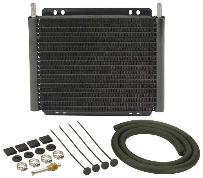A step up from Tube & Fin type coolers, this Plate and Fin cooler features strong furnace-brazed construction, 7/8" wide plates, 3/4" embossed turbulators which maximize heat transfer while also minimizing pressure drop. This unit is perfect for medium to full-size cars and intermediate SUVs that see light to medium duty use and some towing. It greatly extends transmission life by preventing heat-related transmission failures, and improve shifting performance. This kit comes with a complete transmission cooler hardware kit to easily install onto vehicles with 5/16" transmission cooler lines.