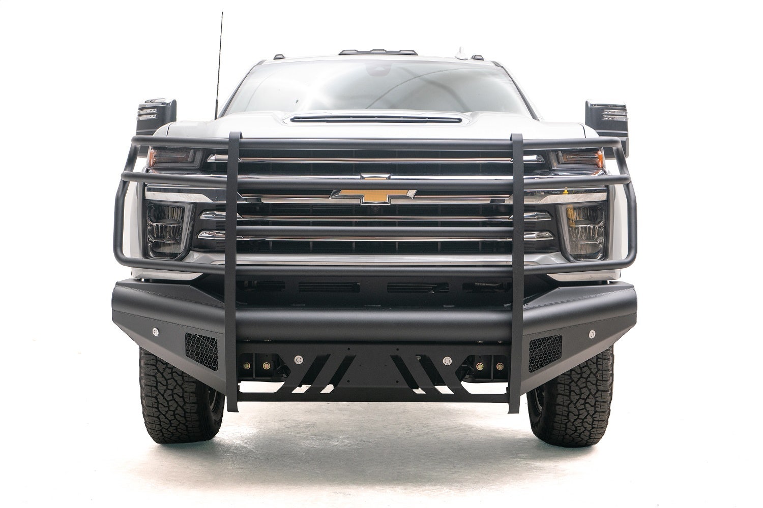 For the Chevy HD we took the ranch bumper and gave it unique styling and design. We matched every bumper to the body lines of each model truck. With no vertical flanges and tapered edges. Available in either a Full Guard, Pre-Runner Guard or No Guard bumper.