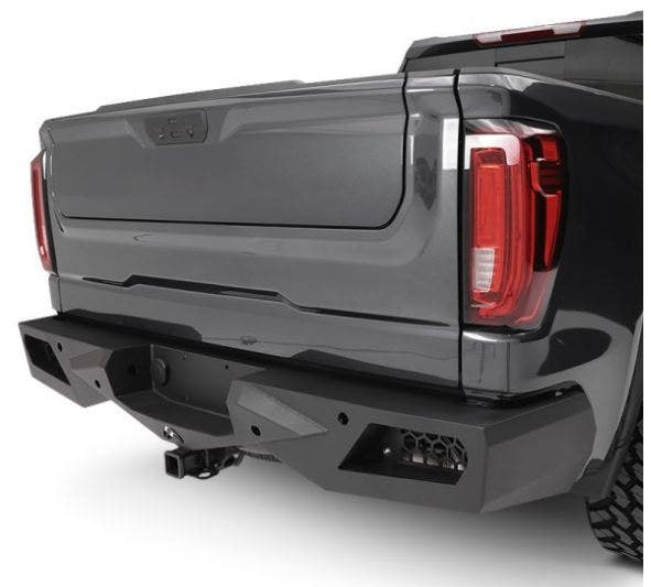The Vengeance Series rear replacement sensor bumper combines superior strength and styling to give your vehicle that extra cool factor. Two front-side openings allow light options; (4) 3" X 3" Dually lights or (2) 6" light bars (lights are not included). Rear bumper is sensor compatible.
