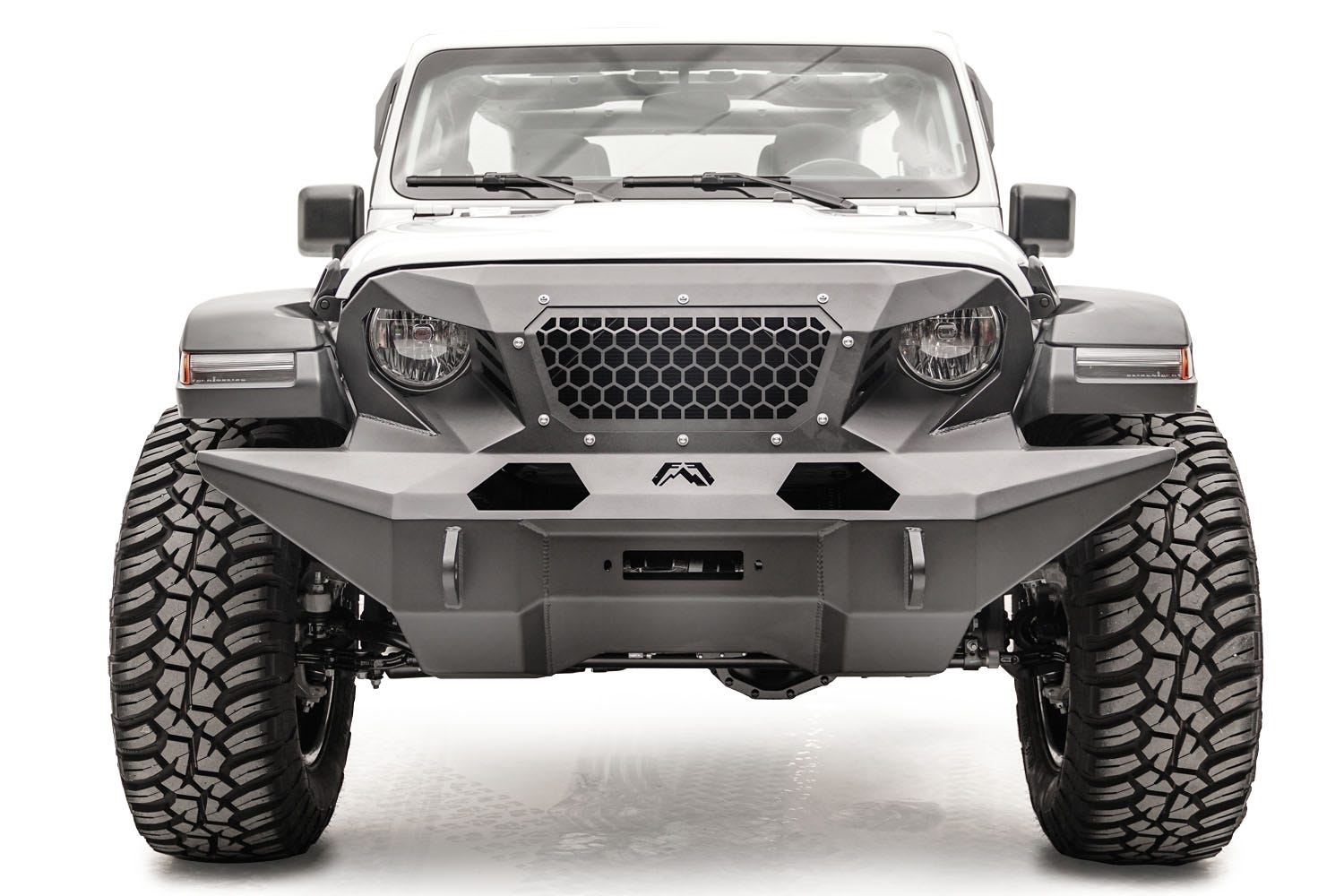 Exclusively for the Jeep JL, The 2nd Gen Full Width Grumper focuses on aggressive styling, ease of installation, and multiple customization options. Key features include combining both grille and winch bumper, full width to match factory fender flares, side vents and large mesh insert for optimal air flow, accommodates 20" light bar with optional insert (GR4606-1), integrated crash bar cover, integrated d-ring mounts, angry eye headlight cutout, and the ability to accommodate warn Zeon winches.