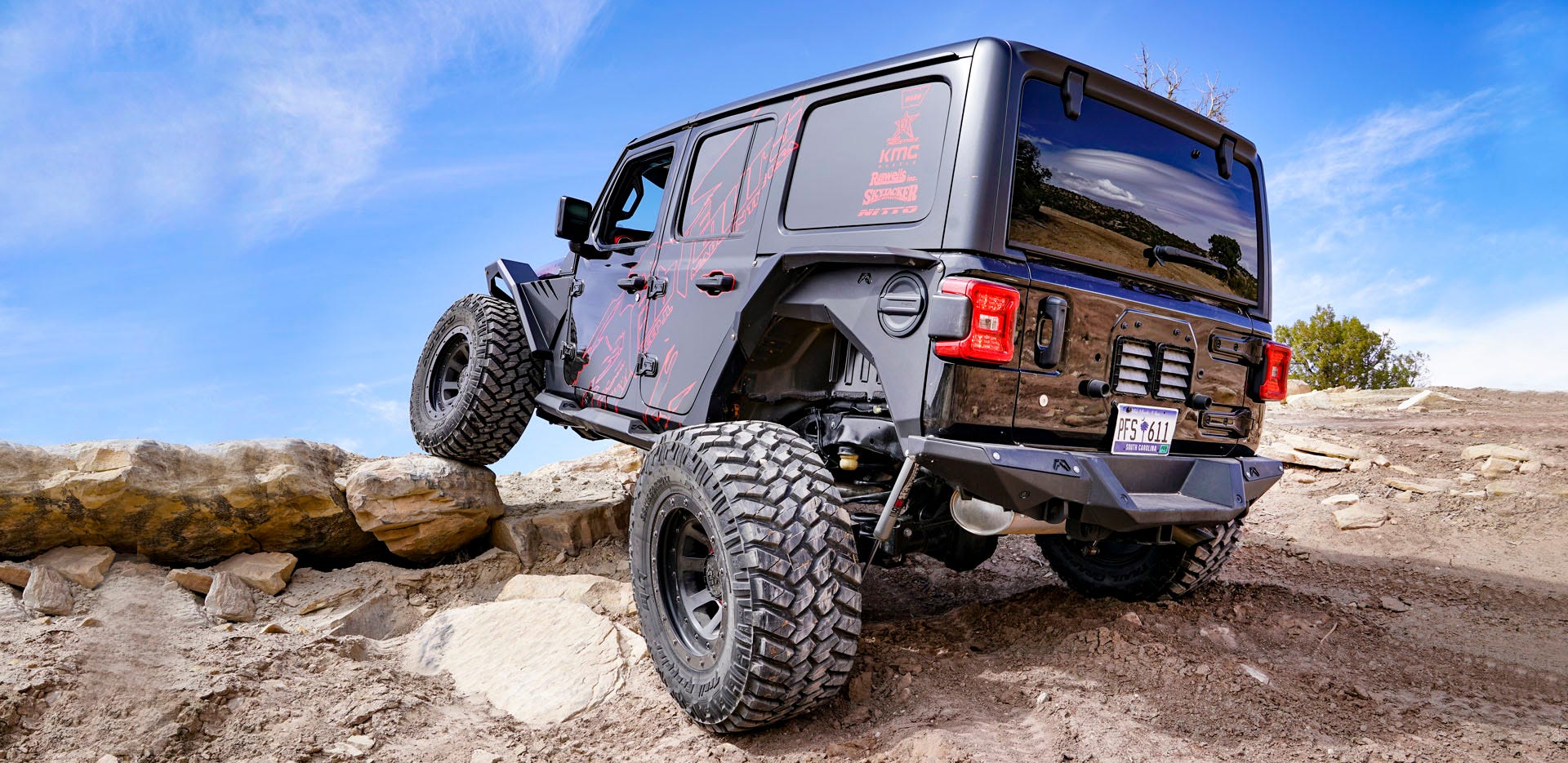 Exclusively for the Jeep JL, The newly designed Fab Fours Rear Bumper focuses on unique styling, superior strength, and ultimate durability. Key features include Integrated D-Rings Mounts, Cut outs to retain factory sensors, 2-skins for customization options, and the ability to hold up to a 35" tire on the factory tire carrier.