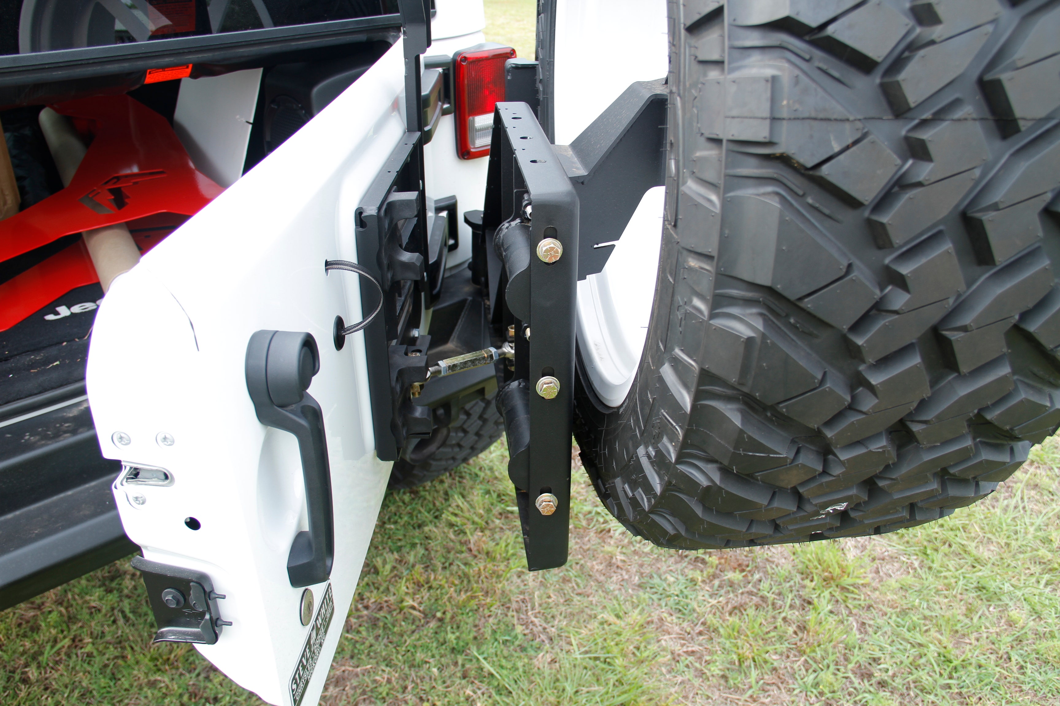 Off The Door Tire Carrier; 2 Stage Black Powder Coated; Needs Base Bumper;