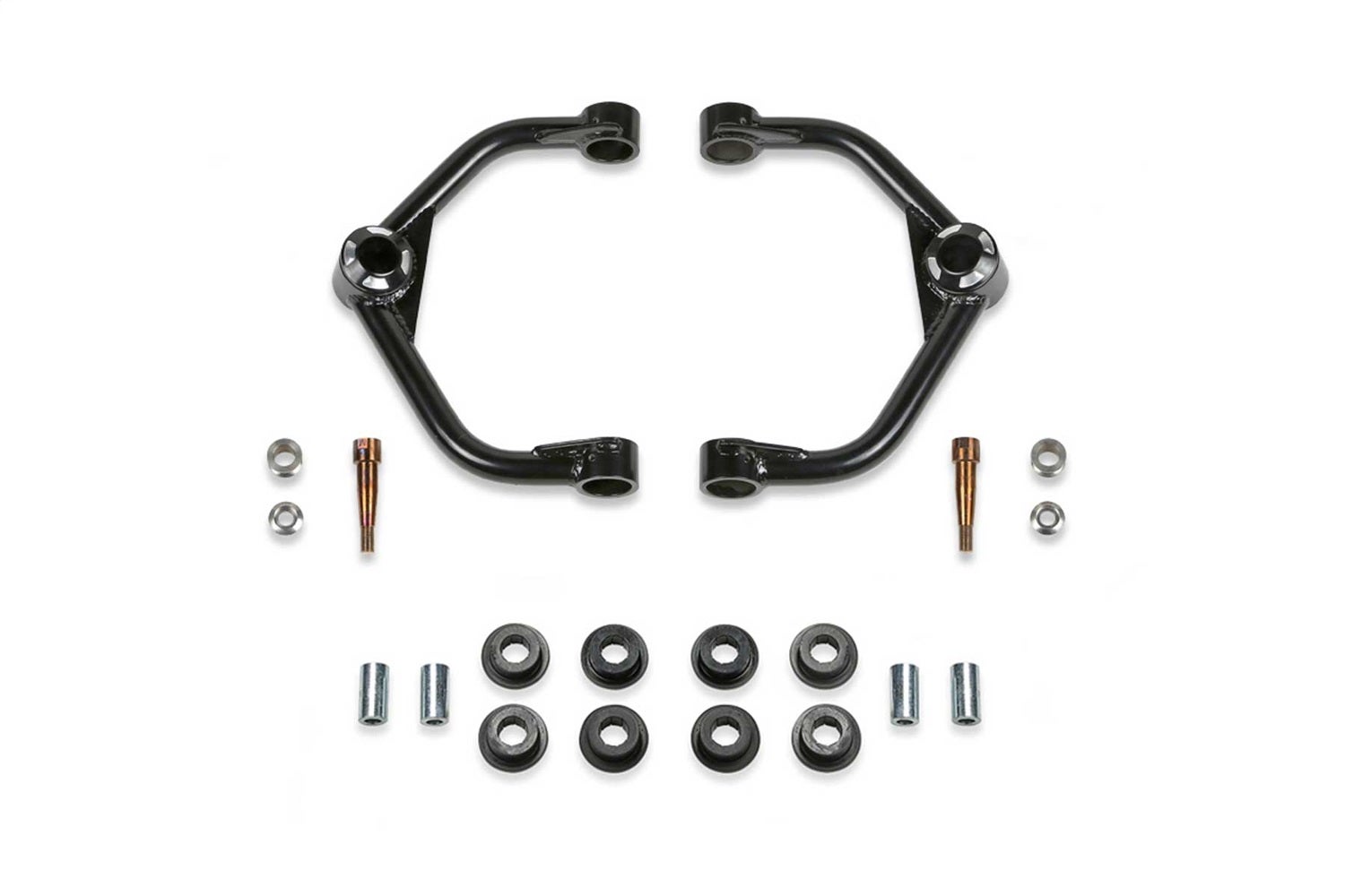 Fabtech's Uniball Upper Control Arms provide increased strength to the front suspension by replacing the stock ball joint upper arms that can become worn and eventually fail under aggressive offroad use. These heavy duty upper arms are designed for longevity in rugged offroad conditions. They also feature increased caster compared to the stock arms. The increased caster helps to balance steering effort with oversized tires. The top quality construction of these arms includes .120" wall 1.25" OD 4130 Chromoly tubing steel tubing. This is superior to the stock plastic arms. Yes, the stock arms are plastic. Fabtech arms will add rigidity and strength to the Ram suspension. High quality 1" FK Stainless PTFE lined Uniball bearings are utilized in place of the small factory ball joints and allow for increased travel without bind. These super stout Ram upper control arms are designed for strength in offroad conditions while providing a more positive on road feel. These heavy duty arms attach to the frame with quality urethane bushings. This helps reduce road noise with less deflection than stock rubber resulting in a more positive road feel. Fabtech's Uniball Upper Control Arms are an excellent upgrade to stock or lifted suspension systems for drivers that demand the best for their vehicle.