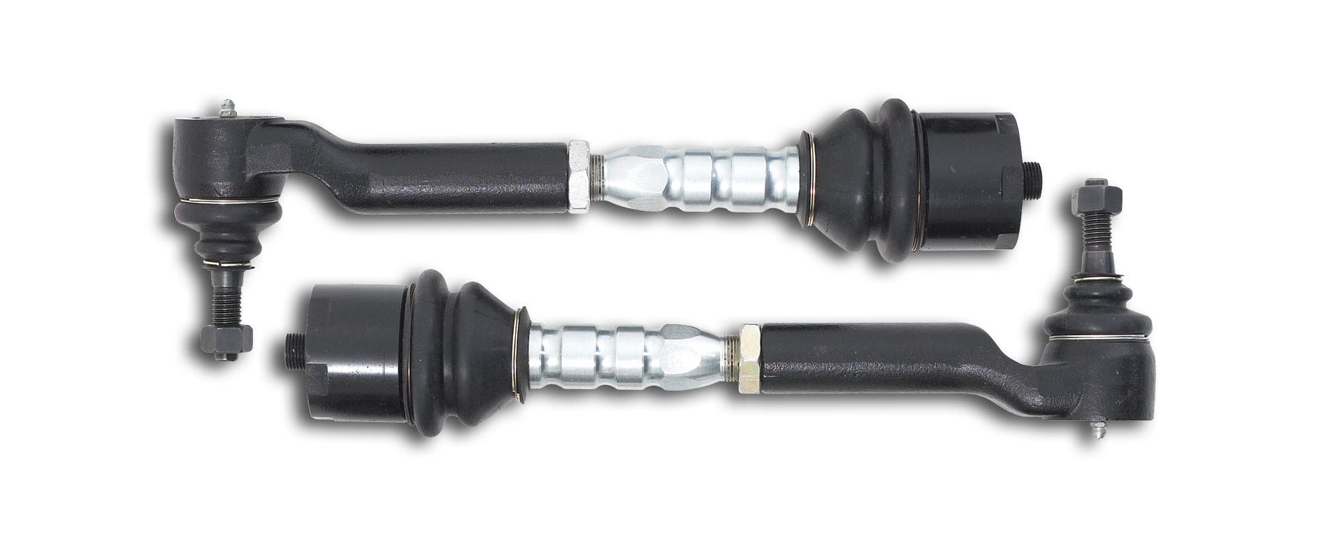 Fabtechs Heavy Duty Tie Rod assemblies are designed to resist bending and breakage when running oversized tires. The extra large diameter Tie Rods are forged and are superior in strength to the inherent weak factory tie rods that are known for bending under light off road use. The Fabtech Tie Rod assemblies directly replace factory Tie Rods without modification to the centerlink or steering knuckles for a fast easy installation.