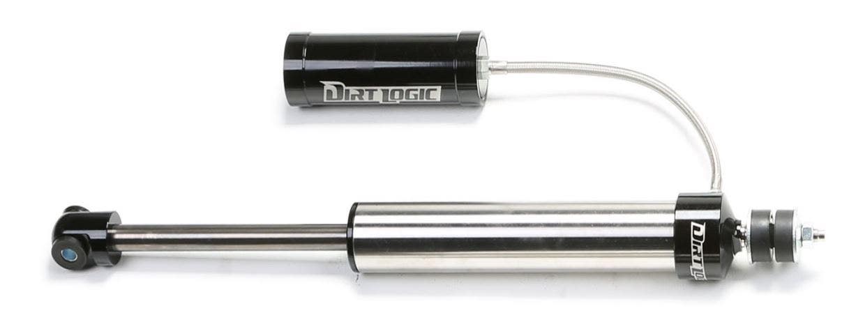 The best shocks only get better with all new Stainless Steel and Aluminum construction. High grade 304 Stainless Steel shock bodies eclipse all other shocks on the market for maximum corrosion resistance. Each Stainless Steel shock body receives a finely detailed machine finish for a stunning appearance. Dirt Logic Stainless Steel reservoir shocks have been upgraded with black anodized 6061 Aluminum reservoir bodies. This includes both piggyback and remote reservoir shocks. The Aluminum resi construction allows for greater heat dissipation thereby keeping the shock cooler to reduce fade during aggressive offroad use. Finally each Dirt Logic piston rod has been upgraded to a NitroSteel(R) material that is super hard while providing increased corrosion resistance compared to chromed piston rods. Get the finest ride with maximum corrosion resistance only from Dirt Logic shocks. In addition to the specific Dirt Logics for each suspension system, there is also a line of universal Dirt Logic shocks available in reservoir and non-reservoir styles, ranging from 8 to 16 inches of stroke. These universal shocks are sold with universal hardware kits for easy installation. Dirt Logic 2.0 and 2.25 shocks feature urethane bushings in the mounting points to reduce road noise and rattling associated with spherical bearings. Dirt Logic coilover shocks utilize spherical bearings at each end for increased strength along with urethane misalignment cups in the top caps. The misalignment cups keep the road noise transferred through spherical bearings to a minimum. Dirt Logic 2.5 and 4.0 coilover shocks use coil springs made to the highest quality standards possible. All Dirt Logic coils posses the ability to go solid without breaking, settling or bowing. All Dirt Logic coilover shocks come preset with the proper amount of preload so they can be bolted on without any further adjustment necessary. Dirt Logics are available with or without an external reservoir.