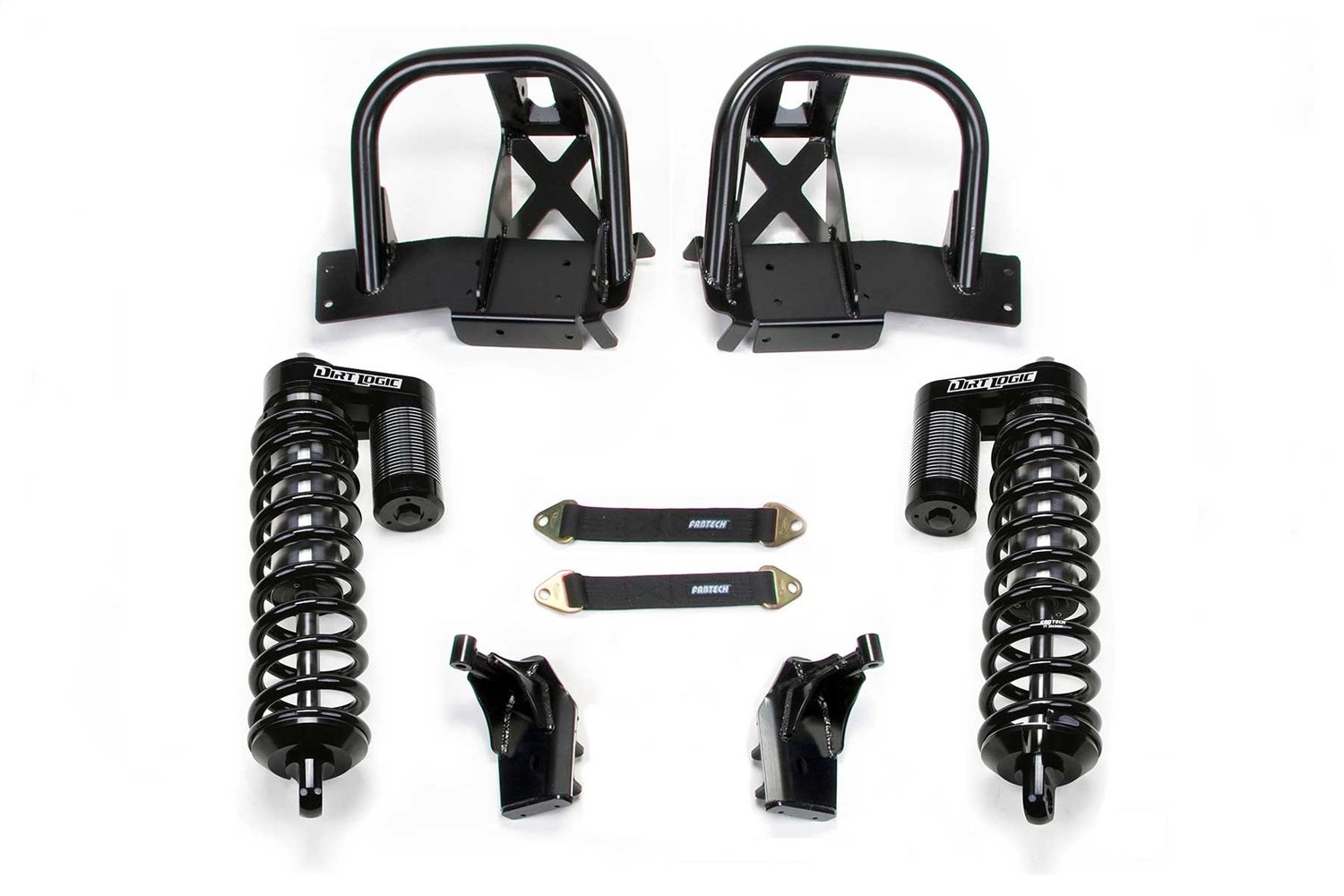 Fabtech steps out of the box with the release of our Coilover Shock conversion system for the ultimate Super Duty suspension upgrade. This Coilover conversion directly replaces the stock Coil Spring buckets with super stout gusseted 1 3/4 in. tubing for exceptional strength. This Coilover conversion system allows use of the Dirt Logic 4.0 Coilover Shocks. To complete this high end Coilover conversion opt for our hydraulic bump stops. This Coilover Shock System is compatible with our Radius Arm and 4 Link systems.
