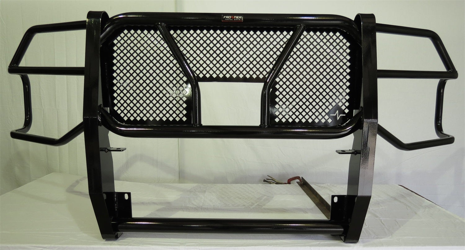 Frontier Truck Gear is the premiere manufacturer of some of the most durable and long lasting Grille Guards on the market today. When you put a Frontier Grille Guard on your truck you can be confident that your vehicle, and more importantly, your family are well protected. This is the best brush guard on the market! It features an original heavy duty one-piece design for only the best in efficiency and strength. The trademark punch-plate grille and full wrap around style has been designed to match the lines of your vehicle. Each custom-made Frontier Truck Gear product is constructed using the best technology and highest quality materials. Our dedication to innovative ensures the sleekest aero-dynamic styling. For added protection and security, we frame mount all our grille guards. Get your Frontier Truck Gear Grille Guard today.