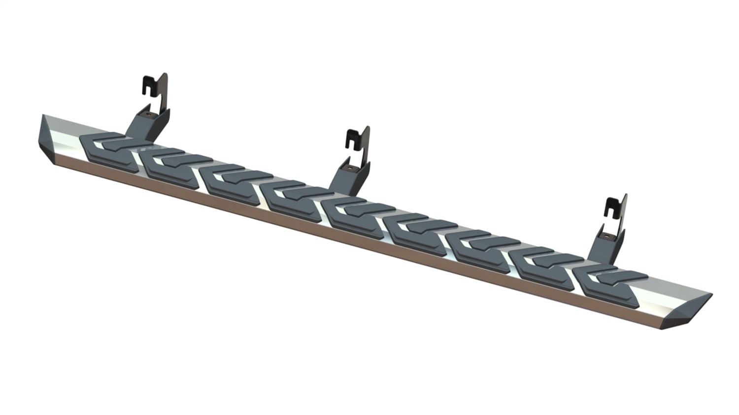 Incredible faceted design, with stealth aerospace inspiration, this unique design running board compliments the styling of today's hard edged trucks and SUV's, and is a look that no-one else can offer. DEEP CHROME Finish - for an even brighter shine than polished stainless steel, that will never become dull, or yellow like stainless steel will. 2.5mm thick MILITARY GRADE ALUMINUM TUBES, with either chrome or black powdercoat finish will NEVER RUST, PIT, PEEL, FLAKE OR DULL. The ultimate in long lasting great looks. Extreme corrosion resistance and backed by our LIFETIME WARRANTY. Our black powder coated tubes are coated with a two-stage e-coat then powder coat process, the same as required by the OEM's. Our BLACK TUBES are also backed by our LIFETIME WARRANTY, unlike the competition. Our tubes include OEM STYLE plastic BRACKET COVERS. These covers improve the appearance by making the bracket look big and beefy but also, they protect the bracket from unsightly stone chips and rust that is visible on all other aftermarket tubes without bracket covers. ULTIMATE GROUND CLEARANCE BRACKETS, with the brackets not extending below the tube, unlike the competition. Aggressive step pad tread design, is molded from the same UV weathering, impact resistant grade of resin used by the OEM's unlike most aftermarket companies that use a brittle and poor weathering grade of resin. All mounting hardware is coated with the same OEM coatings used to pass 1000hrs salt spray testing and are far superior than the zinc or galvanized hardware used by others. All tubes mount USING THE OEM MOUNTING HOLES, for fast installation with clear and simple instructions.