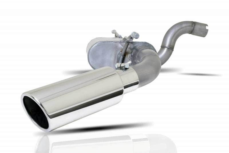Cat-Back Single Exhaust System; Stainless; 2.5 in. Tubing; 4x9x18 in. Oval Body; 2.5 in. Offset In/Out; 4 in. Polished T304 Stainless Rolled Slash-Cut Tip; Exit Behind Rear Tire;