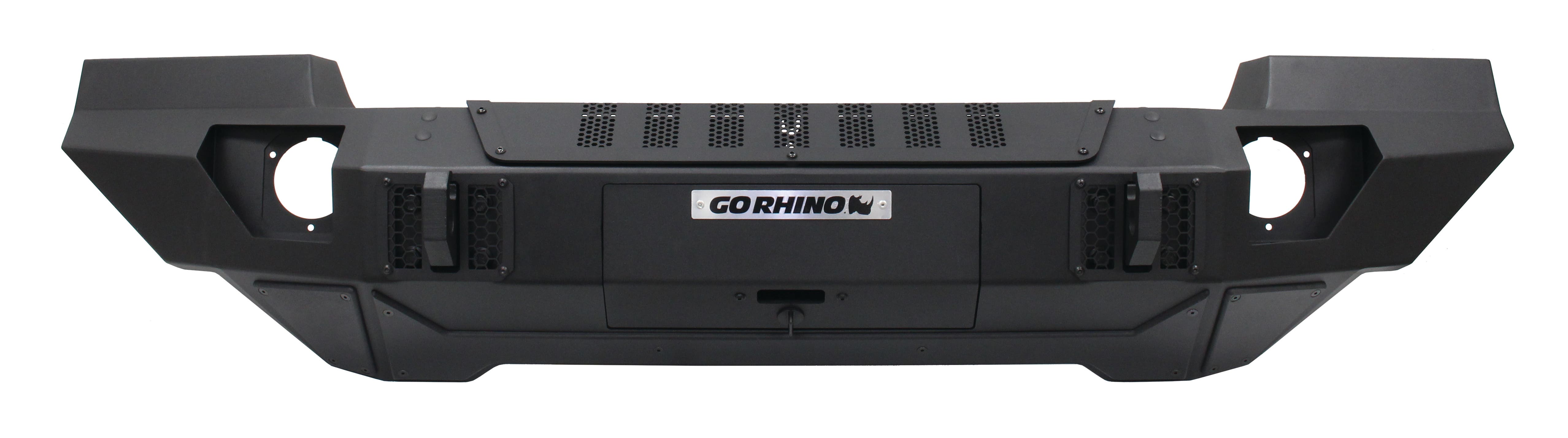 Trailline full width straight bumper can be used on JK and JL Wranglers Full width design is compatible with factory fenders CNC laser cut and formed steel with fully welded hand finished seams Fully welded 1"" thick dual function patented rhino hooks(US D790,408) with cross hole for up to 7/8"" D-Ring pin Industry standard winch mounting slots, for up to 12,000 pound capacity winch, cut directly into the top surface Front gear drawer with latch-optional locks for JK and JL ignition keys available Grade 8 mounting fasteners coated in GEOMET Black for superior strength and corrosion resistance Finished welded assembly is zinc plated then top coated with Go Rhino signature black texture powder coat Optional fairlead mount available, sold separately part # 23200T Three optional light mounts available, sold separately. See Trailline 10, 20 and 30 Light Mount Bars.