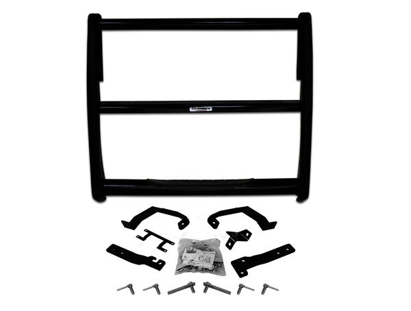 Center grille guard without brush guards. Patented built-in step exclusive to Go Rhino!, provides easy step-up access. No drilling required on most applications, making for a simple frame-mount installation. Modular construction. Black powder coat finish with a 5 year warranty. Will ship UPS.