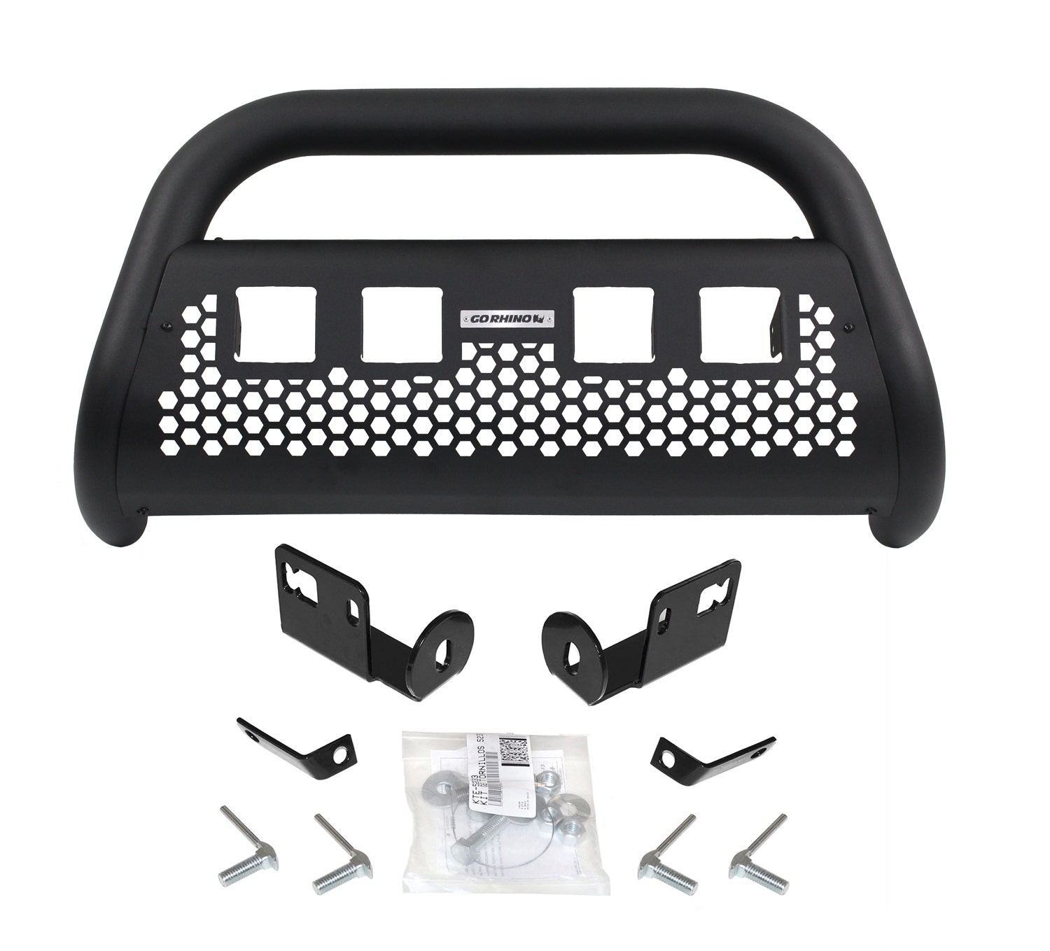 Rhino Charger 2 RC2 LR Bull Bar Kit; Textured Black; Incl. Bull Bar; Mounting Brackets; Mounting Points For 4 3 in. Cube Lights; Skid Plate; 3 in. Tubing; Front;