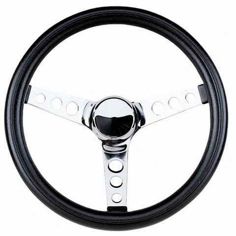 Classic Series Steering Wheel; 13 1/2 in. Diameter; 3 1/2 in. Dish; Black Cushion Grip; Chrome 3-Spoke Design;