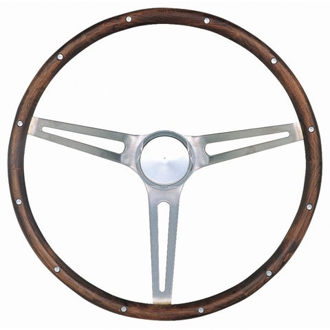 Classic Series Nostalgia Steering Wheel; 15 in. Diameter; 4 1/8 in. Dish; Hardwood Grip; Brushed Stainless Steel 3-Spoke Design;
