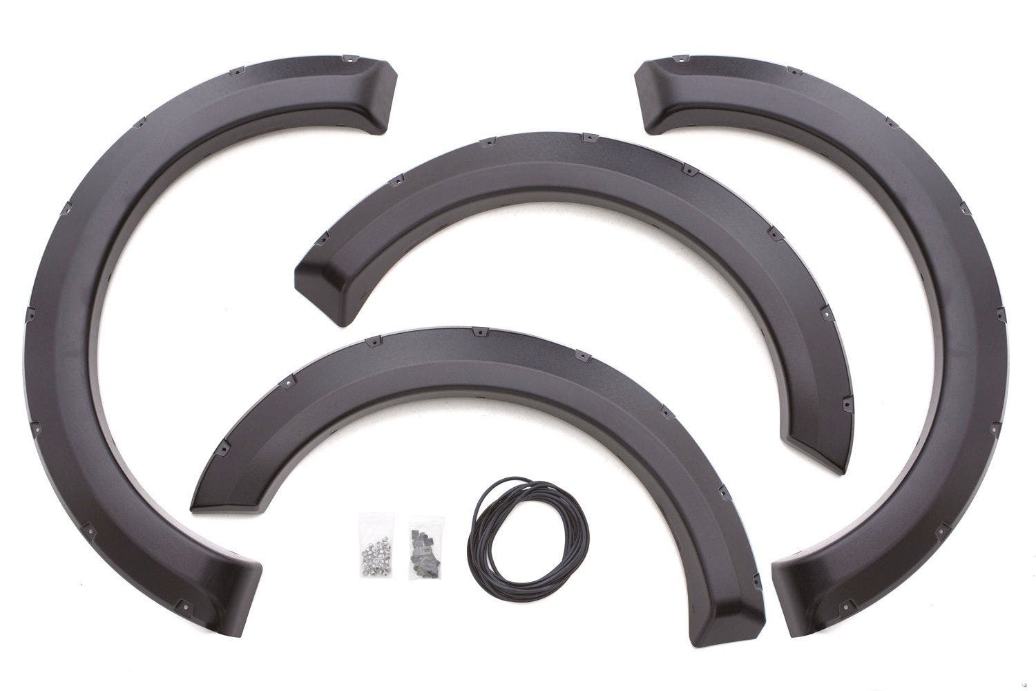 Rivet Style Fender Flare Set; Textured Black Finish; 4 pc.; Front Height 6.5 in./Coverage 2 in.; Rear Height 6.5 in./Coverage 2 in.;