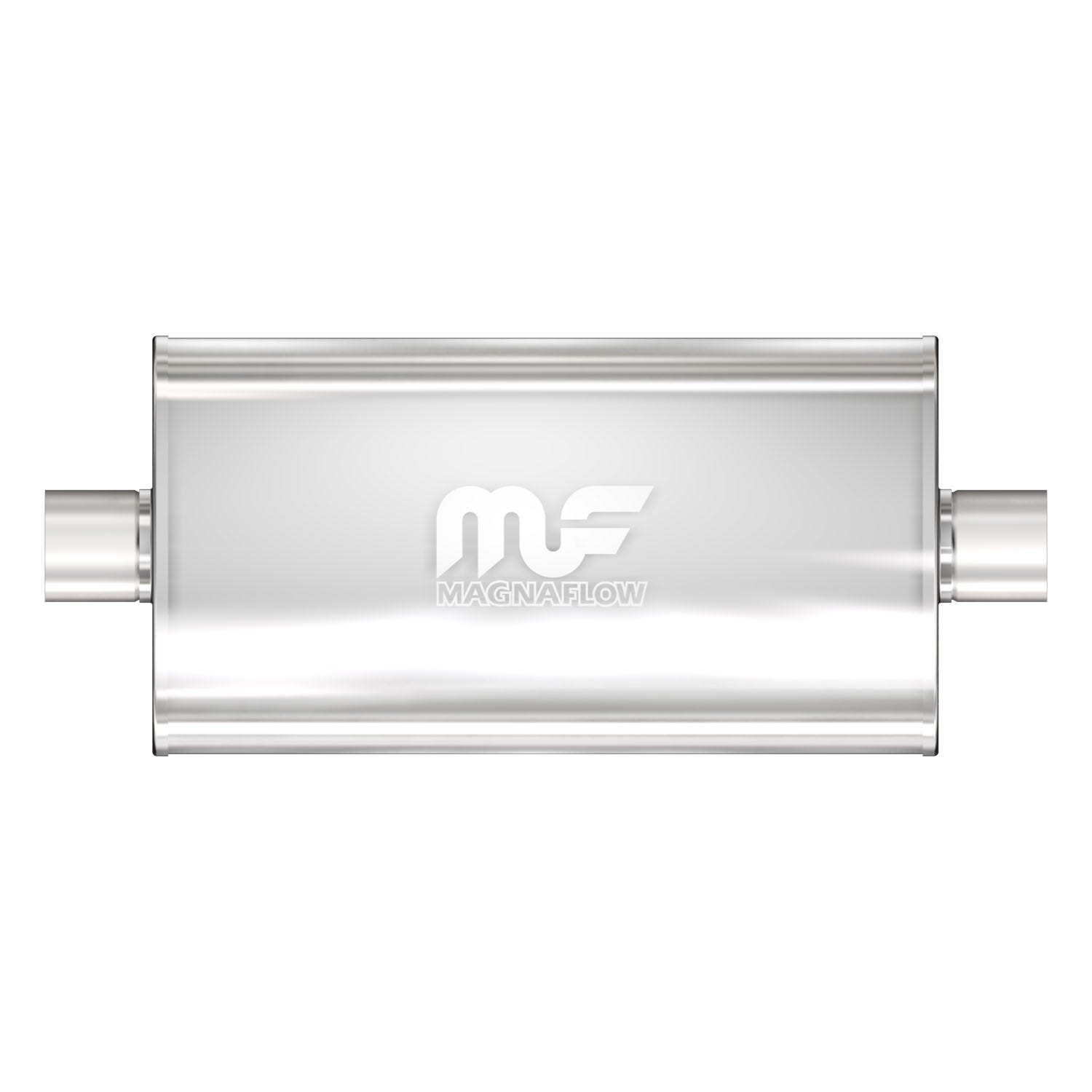 The MagnaFlow 5" X 11" Oval Straight-Through 12579 is engineered to enhance your ride with a healthy helping of our signature exhaust sound and dyno-proven performance thanks to its free-flowing straight-through perforated stainless steel core wrapped in stainless steel mesh and acoustic fiber fill. The reversible, universal 3/3in. diameter inlet/outlet Straight-Through layout allows you to install it in whatever orientation and configuration you see fit. However, professional installation is highly recommended. Muffler 12579's weight-optimized 5x11x22in. oval-shaped body features a satin finish that elevates the overall aesthetics of your current exhaust setup. 12579 is made of durable, corrosion resistant stainless steel and produced using cutting-edge CNC precision robotic manufacturing techniques, all backed by MagnaFlow's limited lifetime construction warranty.