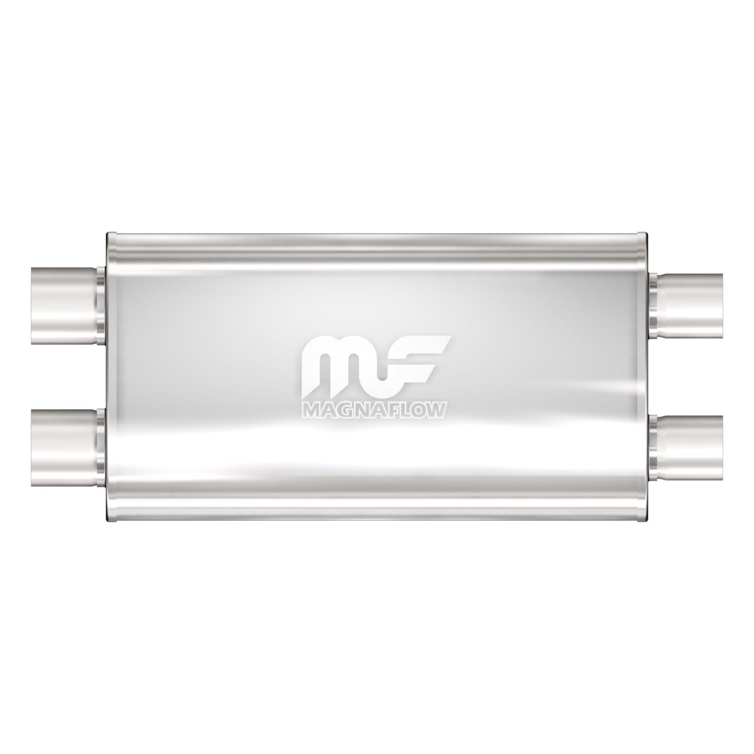 The MagnaFlow 5" X 11" Oval Straight-Through 12599 is engineered to enhance your ride with a healthy helping of our signature exhaust sound and dyno-proven performance thanks to its free-flowing straight-through perforated stainless steel core wrapped in stainless steel mesh and acoustic fiber fill. The reversible, universal 3/3in. diameter inlet/outlet Straight-Through layout allows you to install it in whatever orientation and configuration you see fit. However, professional installation is highly recommended. Muffler 12599's weight-optimized 5x11x22in. oval-shaped body features a satin finish that elevates the overall aesthetics of your current exhaust setup. 12599 is made of durable, corrosion resistant stainless steel and produced using cutting-edge CNC precision robotic manufacturing techniques, all backed by MagnaFlow's limited lifetime construction warranty.