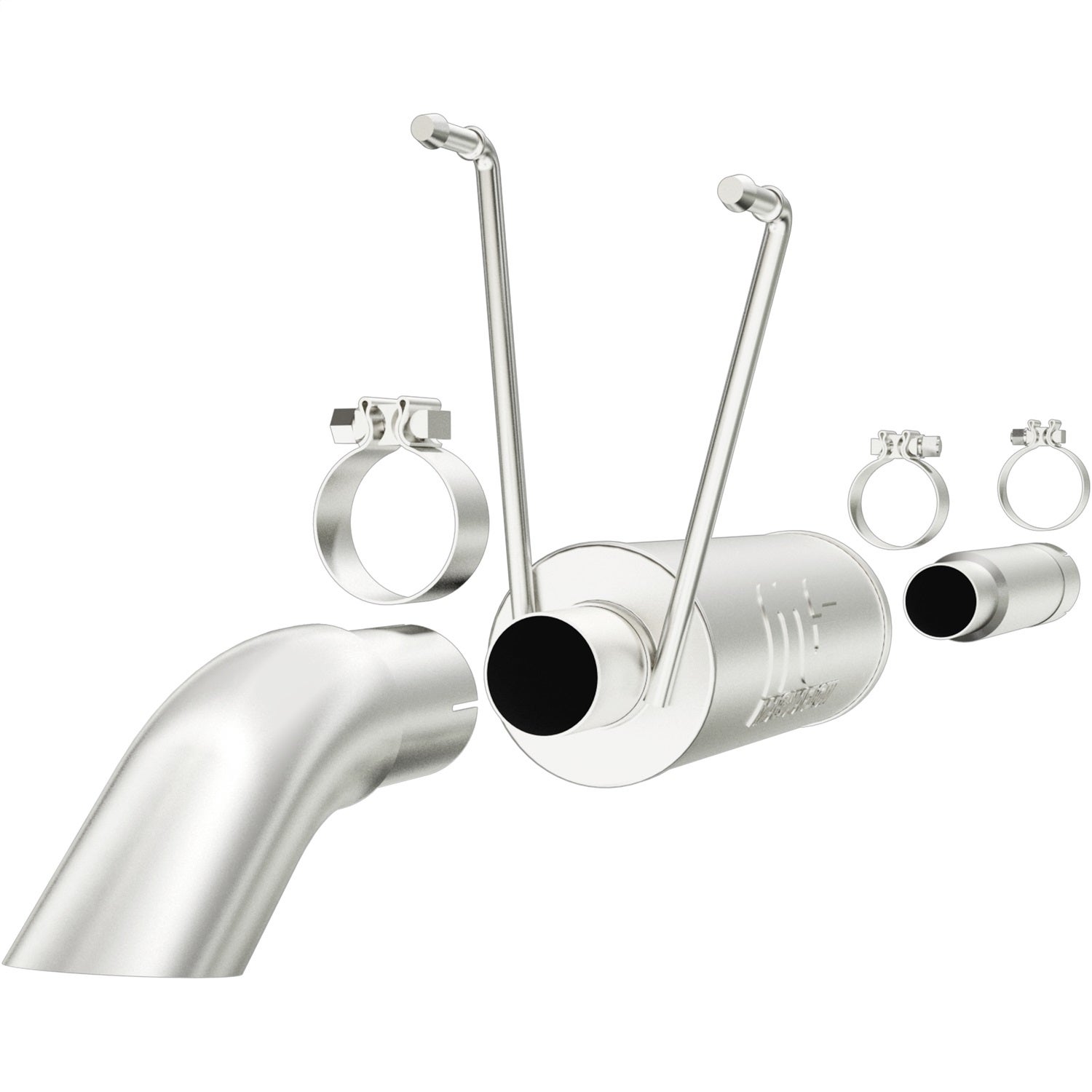 The MagnaFlow Off Road Pro Series 17108 brings additional off-roading prowess and our deep signature exhaust note to your Truck with a weight-optimized, dyno-tested, corrosion resistant and durable stainless steel design engineered to closely hug the undercarriage for improved ground clearance. Exhaust kit 17108 is engineered to produce VeryAggressive exterior and Aggressive interior sound levels. Extensive 3D scanning was used during the development of this Truck exhaust system to create a direct-fit design, enabling a do-it-yourself installation process. 17108's emissions-legal cat-back design replaces all your truck's exhaust components from the catalytic converter on back with its 3in. diameter mandrel bent main piping that passes through 1 Straight-Through mufflers before ending in a turndown before rear axle exit with 3in. Satin Clamp-On-Single Wall-Turndown-Cut Edge tips. Exhaust system 17108 is produced using advanced CNC precision robotic manufacturing techniques and backed by MagnaFlow's limited lifetime warranty.