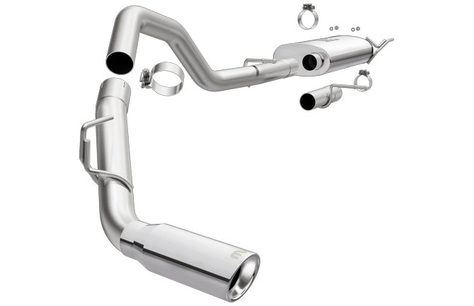 The MagnaFlow Ford Expedition Street Series 19424 brings out the personality of your 3.5L 2018-2021 Ford Expedition with our signature resonant, powerful engine tone and dyno-proven performance. Thanks to its fast-flowing, mandrel bent 3in. main piping and 1 Straight-Through mufflers ending in a Single Passenger Side Rear exit with 4in. Polished Welded-Double Wall-Angle Cut-Rolled Edge tips, this Ford Expedition exhaust kit has the performance chops to match its sporty sound and appearance. Upgrade your ride to the next level with an exhaust that has the pipes to put other Ford Expedition's to shame. With this system your vehicle will be producing Moderate exterior and Mild interior sound levels while leaving other cars and trucks feeling envious at every stoplight. Exhaust kit 19424 features a cat-back layout that replaces your ride's stock exhaust components from near the catalytic converter on back. Extensive 3D scanning during development has resulted in a direct-fit design that you can easily install yourself. 19424 is produced using CNC precision robotic manufacturing techniques and is backed by MagnaFlow's 1-year limited finish warranty and limited lifetime construction warranty.