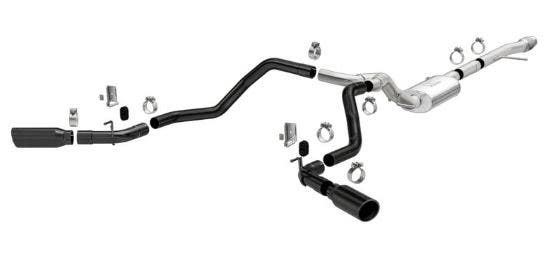 The Street Series Black Performance Exhaust system delivers dyno proven power with a comfortable interior sound and performance exterior sound. Features Black coated tips.