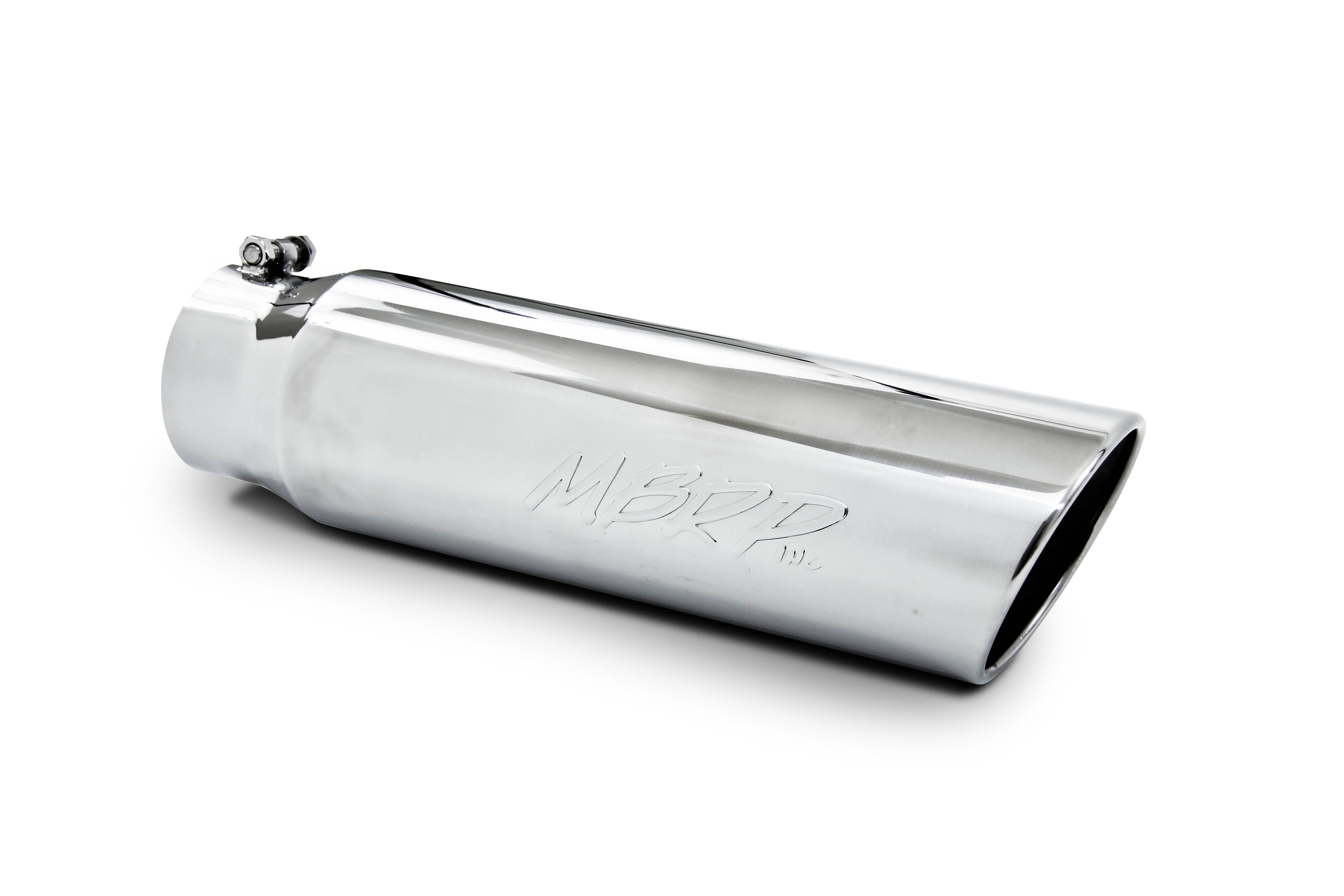 From a style point of view the exhaust tip is perhaps the most important component of you performance exhaust system. It is the part that says the most about you and your sense of automotive style. At MBRP we take that very seriously. Our stainless steel tips are made from mirror polished T304 stainless steel. Chrome cracks; discolors; and peels under the harsh conditions a tip is exposed to. Our T304 stainless tips are easily cleaned for a shine that will last as long as you own your vehicle. Our Black finish tips provide a cool murdered out look that is fast becoming an extremely popular look Whichever you choose you can rely on a perfect fit and years of enjoyment.