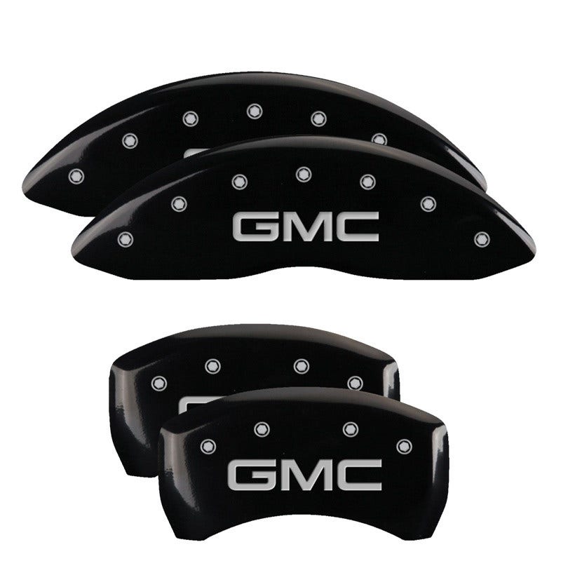 MGP Caliper Covers 34218SGMCBK Compatible with/Replacement for GMC Black Powder Coat Finish, Silver Characters, Set of 4